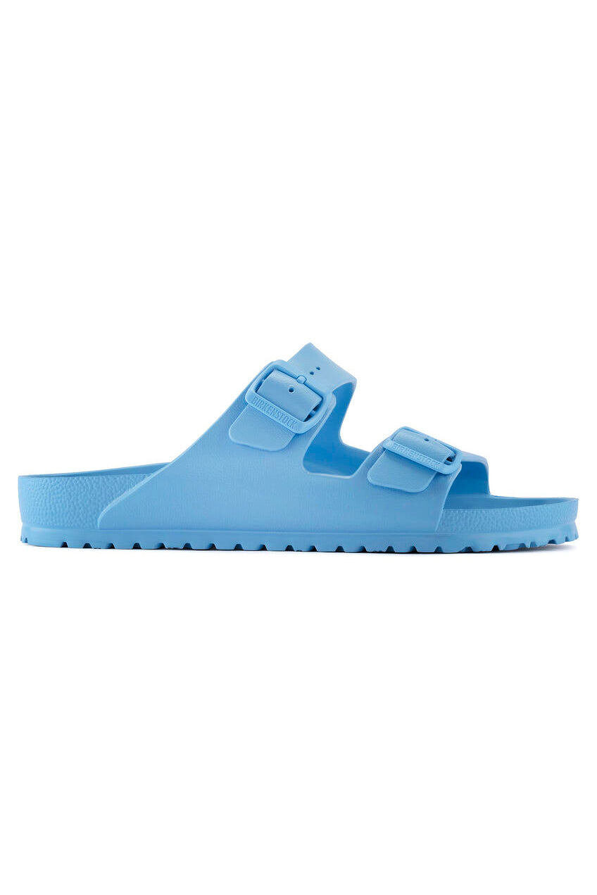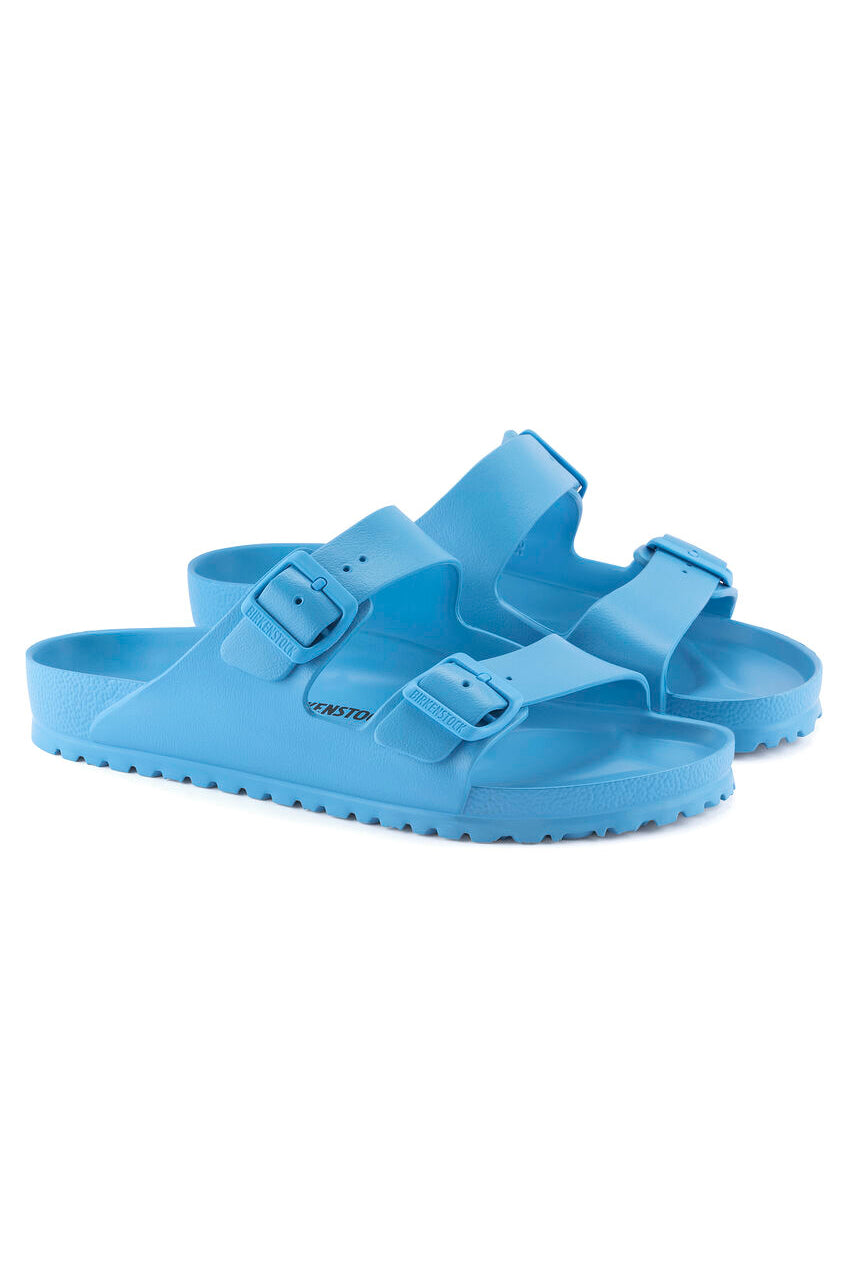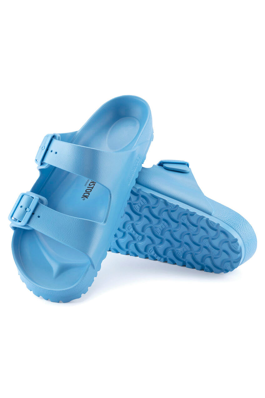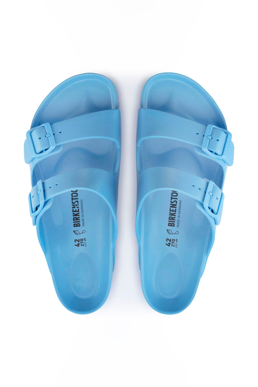 The legendary two-strap design from Birkenstock - the Arizona. Modelled on the cork original, this sandal is made from ultra lightweight and highly flexible EVA. These sandals are shock absorbing, waterproof, and skin-friendly. Wear them at the beach, in the garden, or around the gym and after workouts. It's the perfect addition to your classic Birkenstock sandals.