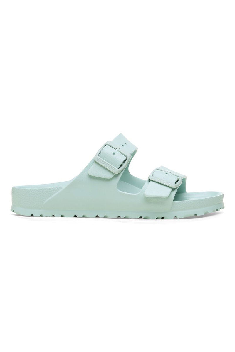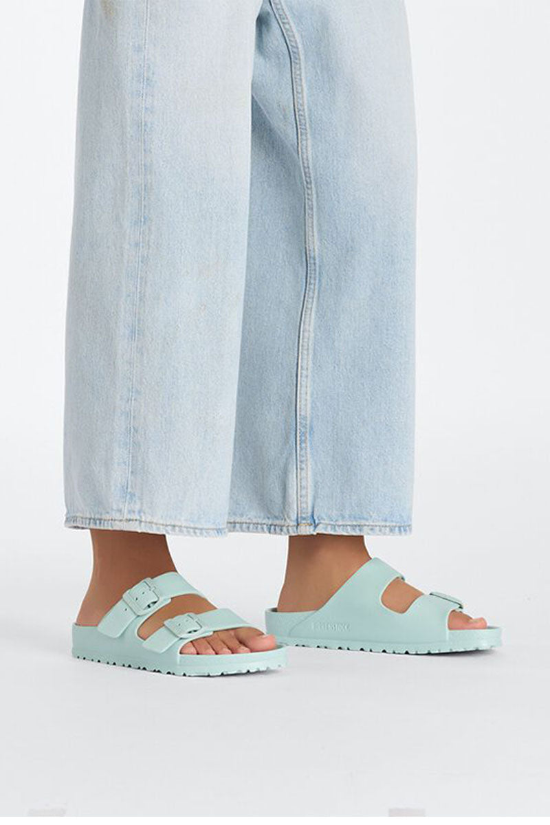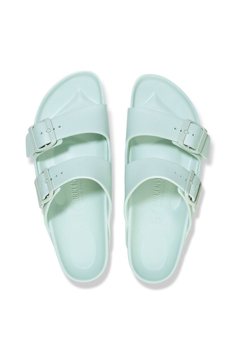 The legendary two-strap design from Birkenstock - the Arizona. Modelled on the cork original, this sandal is made from ultra lightweight and highly flexible EVA. These sandals are shock absorbing, waterproof, and skin-friendly. Wear them at the beach, in the garden, or around the gym and after workouts. It's the perfect addition to your classic Birkenstock sandals.