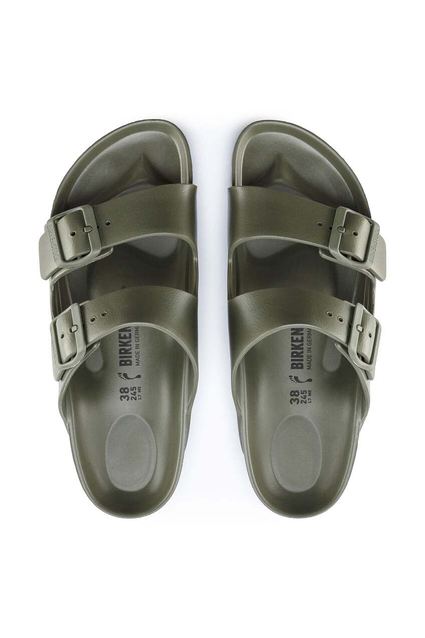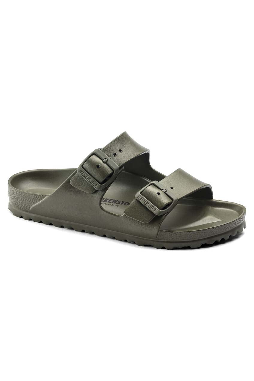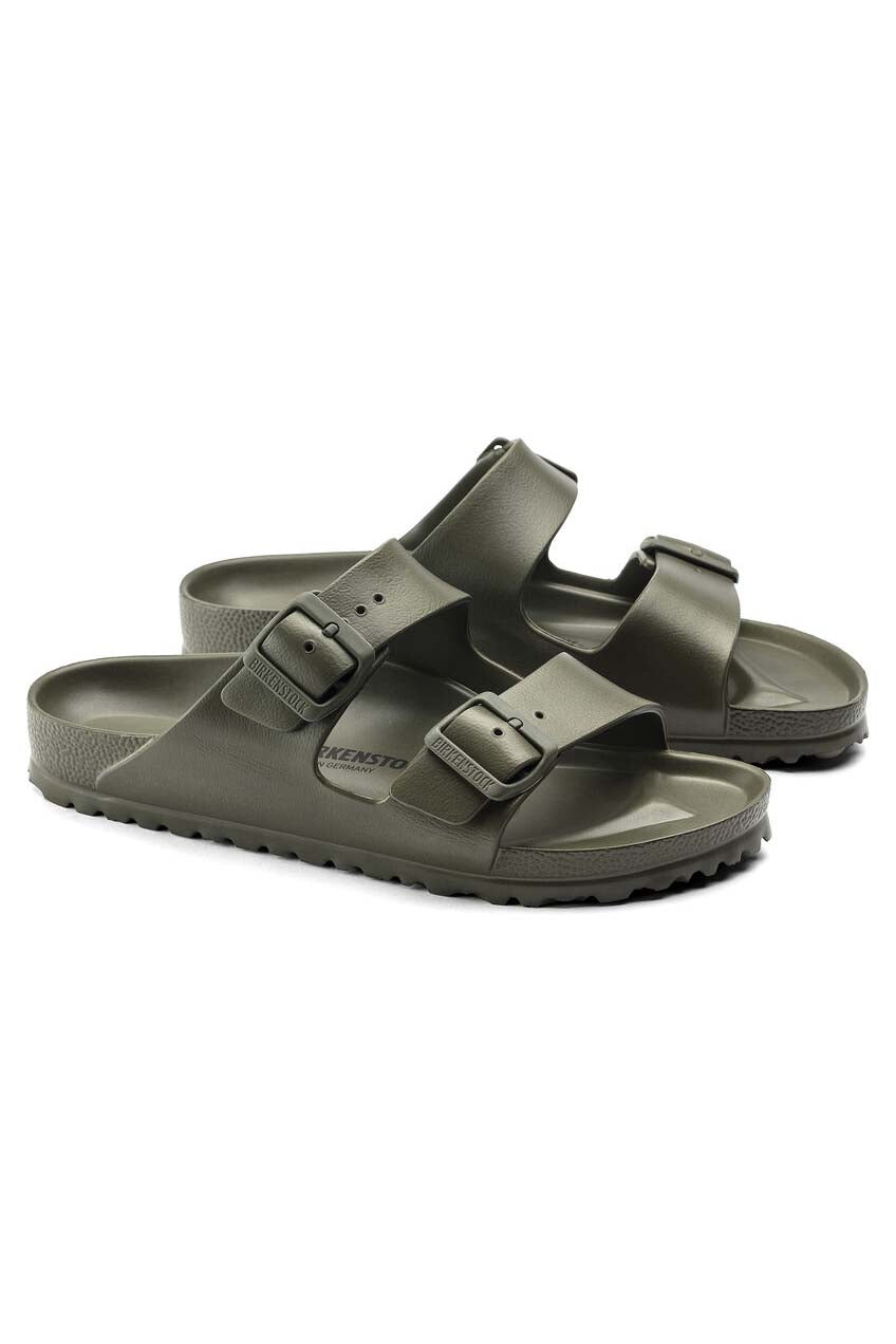 The legendary two-strap design from Birkenstock - the Arizona. Modelled on the cork original, this sandal is made from ultra lightweight and highly flexible EVA. These sandals are shock absorbing, waterproof, and skin-friendly. Wear them at the beach, in the garden, or around the gym and after workouts. It's the perfect addition to your classic Birkenstock sandals.