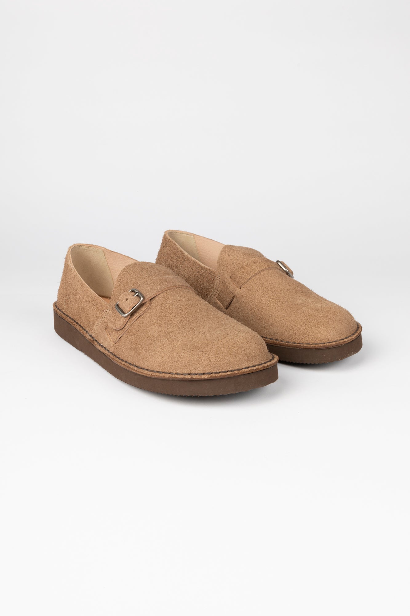 The Bengal is loafer style, featuring a round toe silhouette with an adjustable and decorative strap across the foot. Minimal and elegant in design, the shoe is unlined, lightweight, and designed for everyday wear.