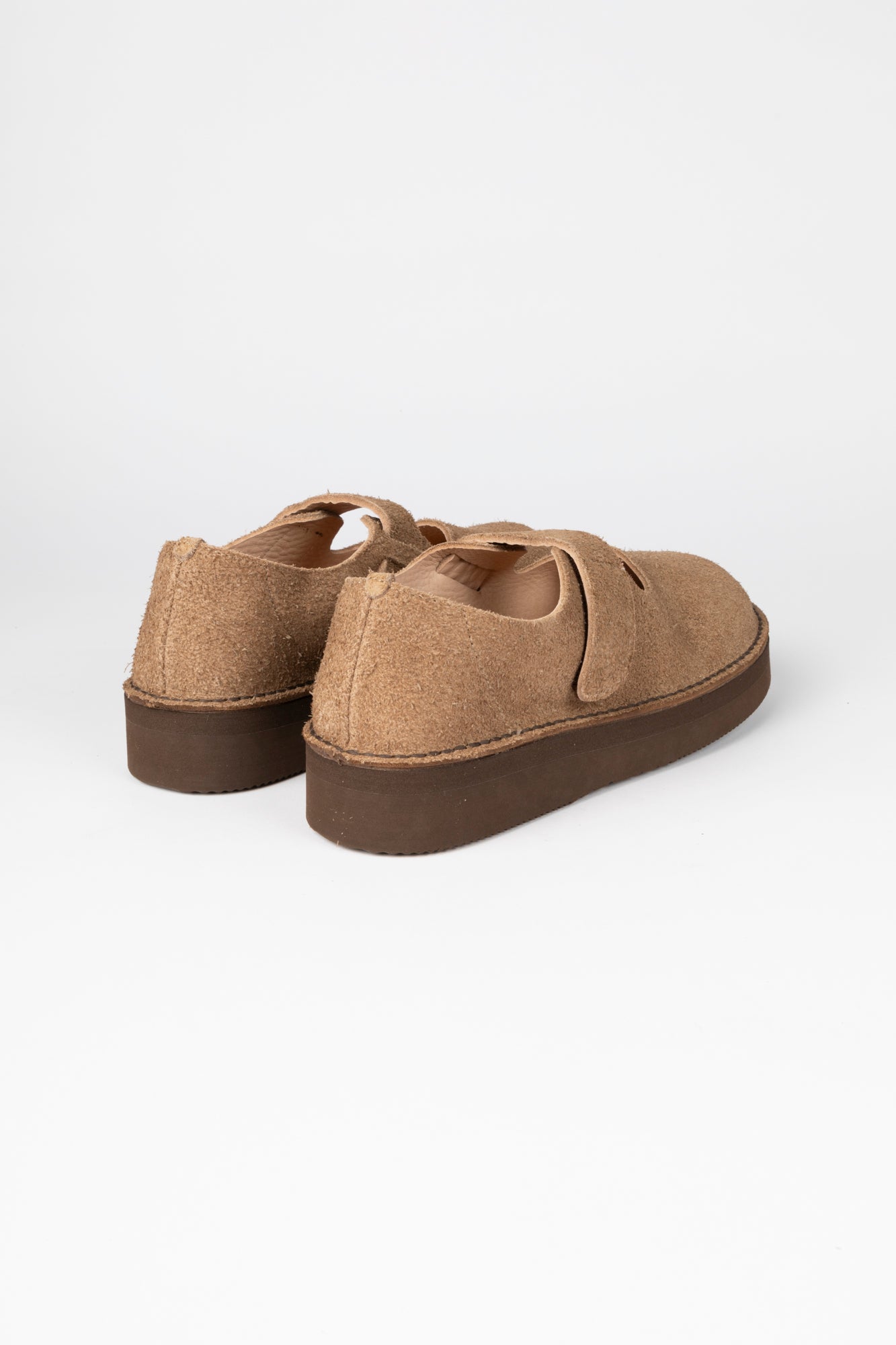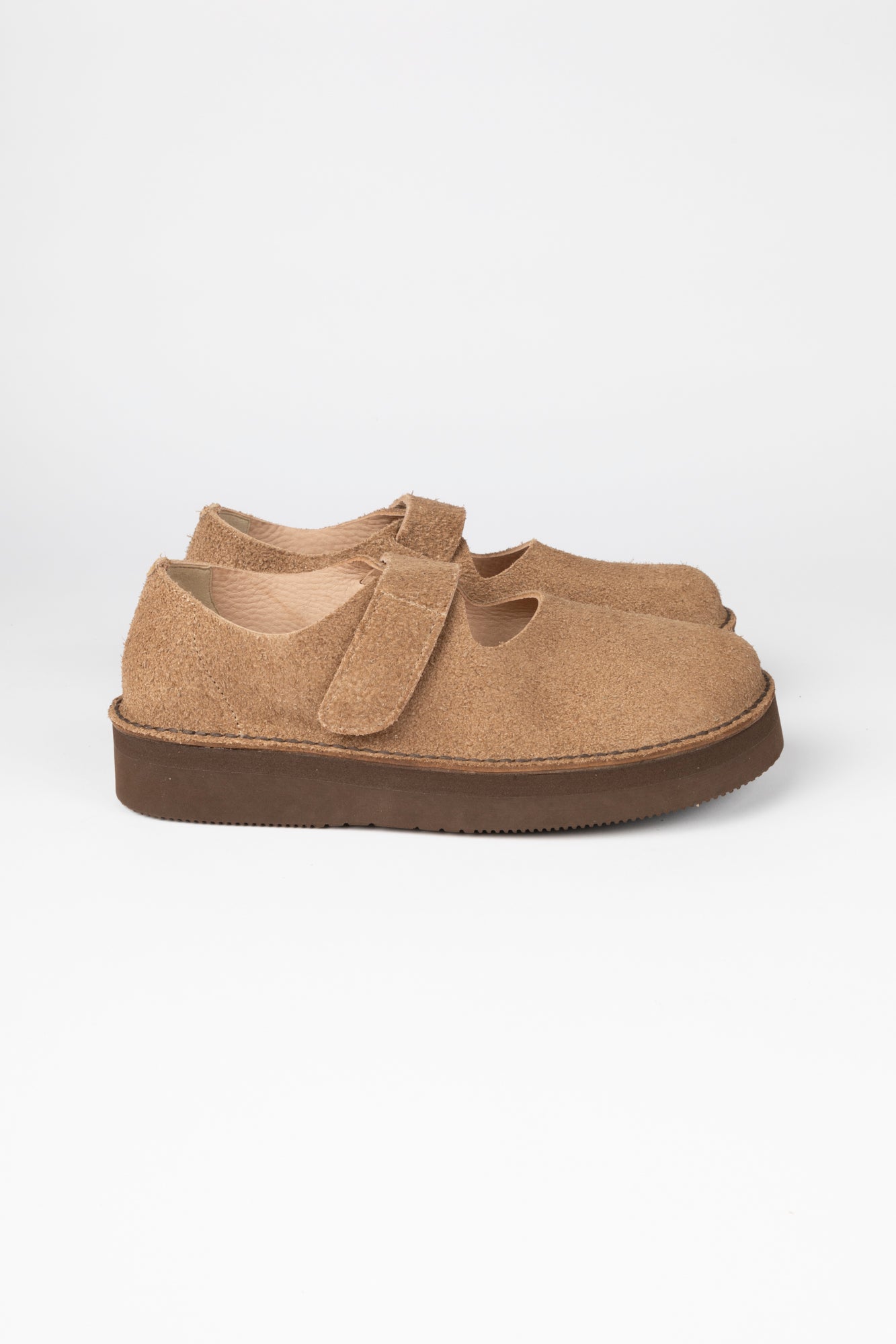 The Burslem is mary jane style featuring a round toe silhouette with a thick strap across the upper with a velcro fastening. Minimal and elegant in design, the shoe is unlined, lightweight, and designed for everyday wear.