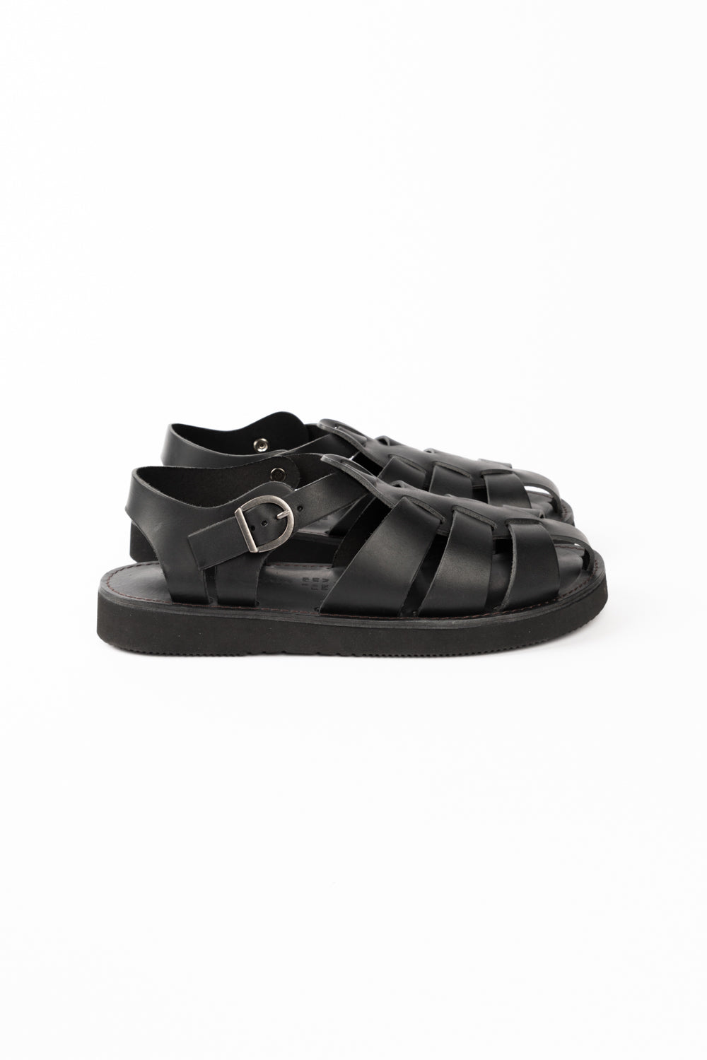 The Gurkha is a military inspired sandal, with thick woven upper detailing side buckle fastening. Minimal and elegant in design, the shoe is unlined, lightweight, and designed for everyday wear.