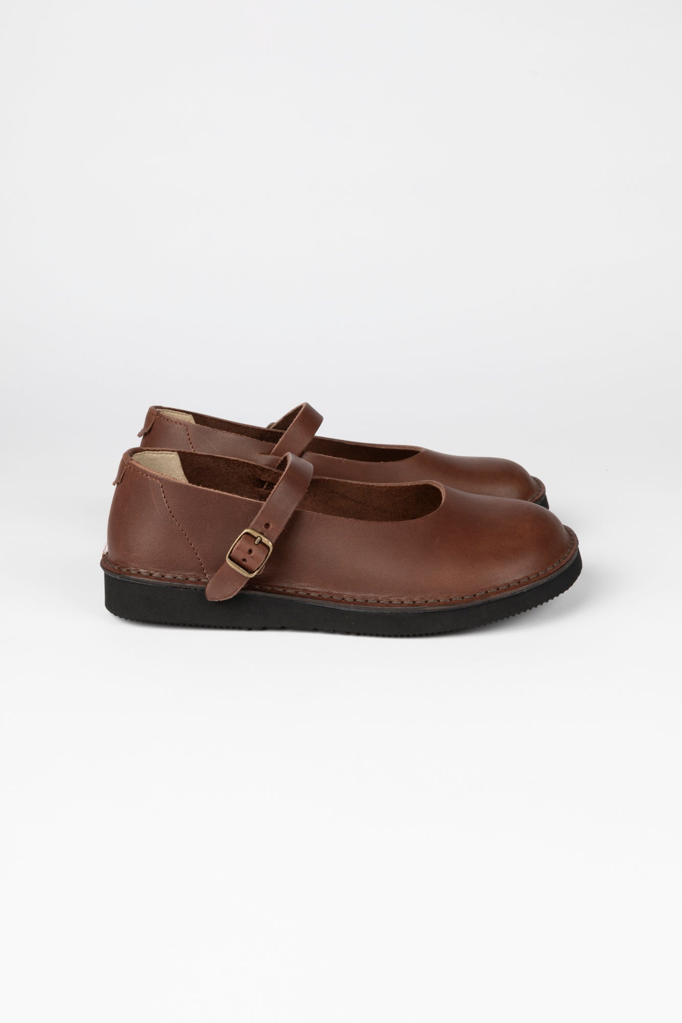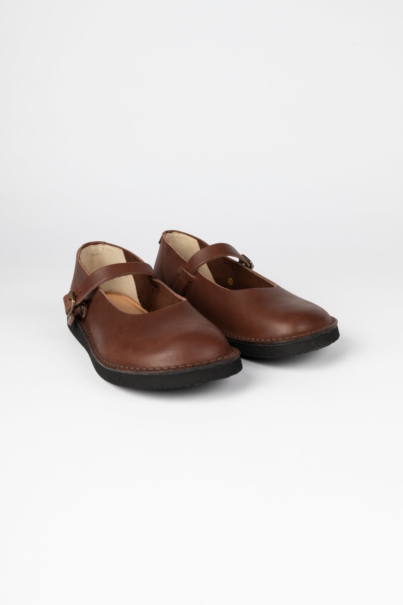 The Shelly is a low cut mary jane style shoe with a finer strap across the upper with a small side buckle fastening. Minimal and elegant in design, the shoe is unlined, lightweight, and designed for everyday wear.
