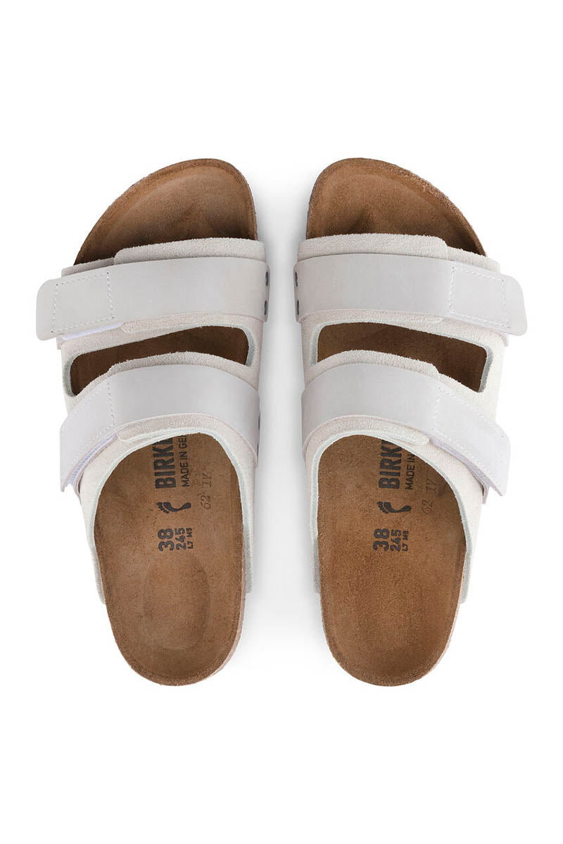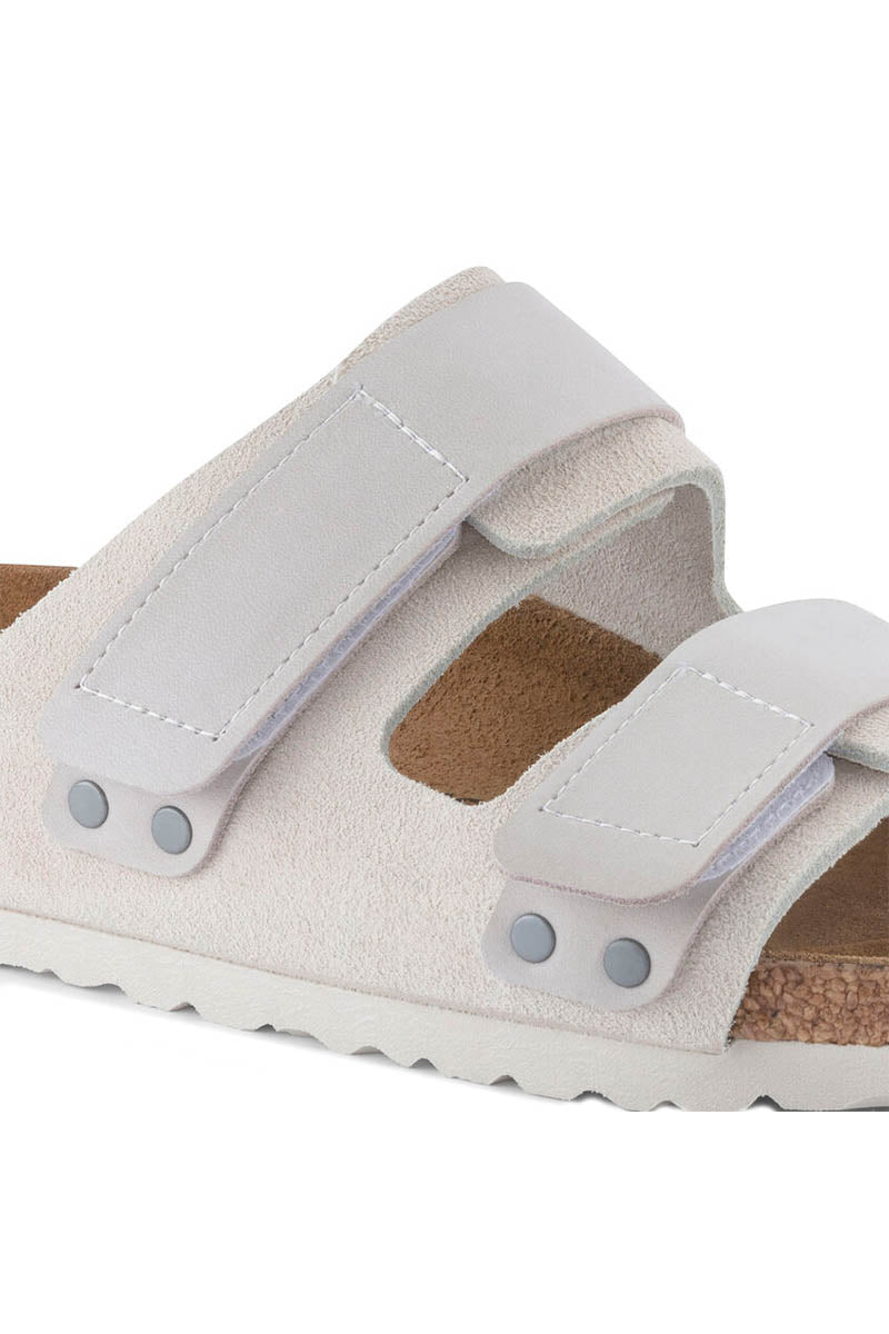 A sport-inspired take on the iconic Arizona sandal, the Uji maximizes on-the-go comfort. A suede upper comes together softly over the foot, secured by nubuck hook-and-loop straps for a customized fit. The style is grounded in signature BIRKENSTOCK support, with a cork-latex footbed that shapes to you with wear. Slip on and go.