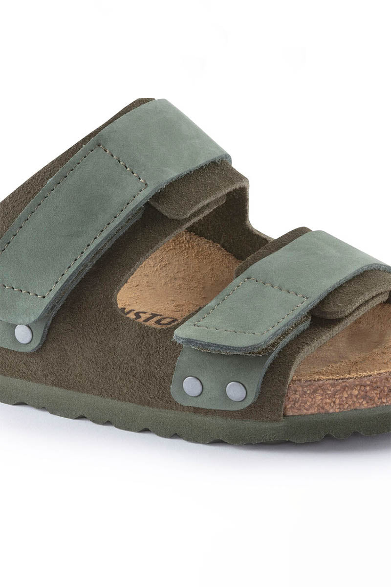 A sport-inspired take on the iconic Arizona sandal, the Uji maximizes on-the-go comfort. A suede upper comes together softly over the foot, secured by nubuck hook-and-loop straps for a customized fit. The style is grounded in signature BIRKENSTOCK support, with a cork-latex footbed that shapes to you with wear. Slip on and go.