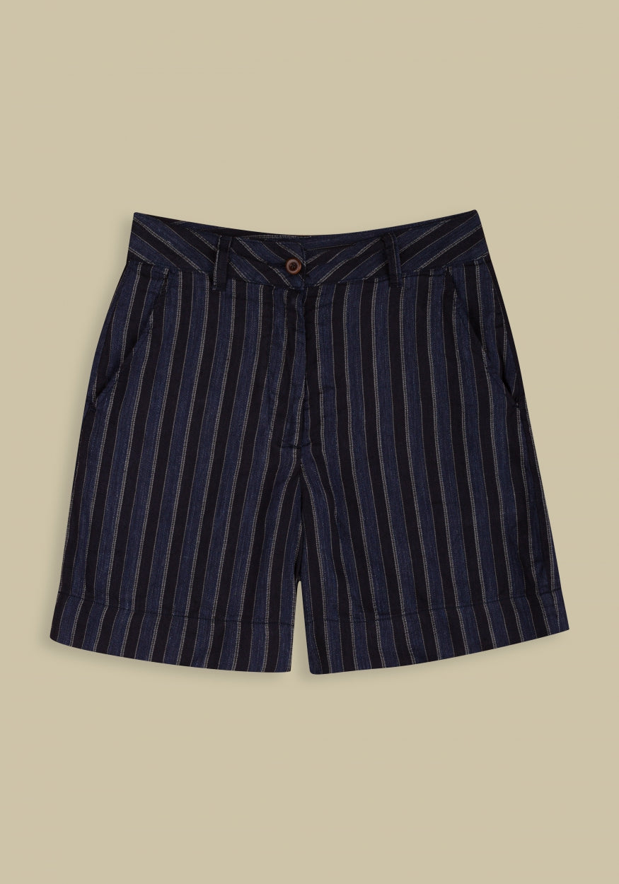 Bangja Shorts | Blue Linen Stripe