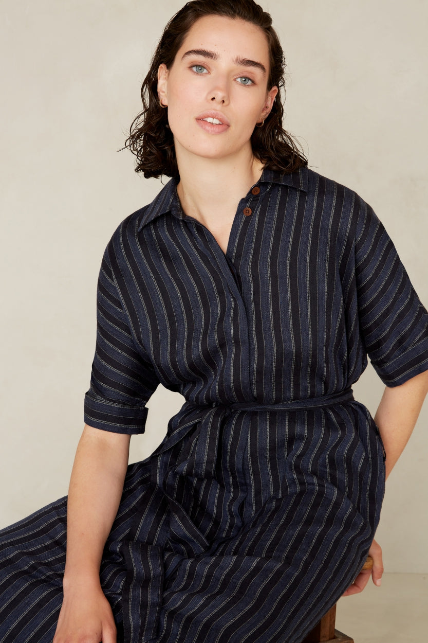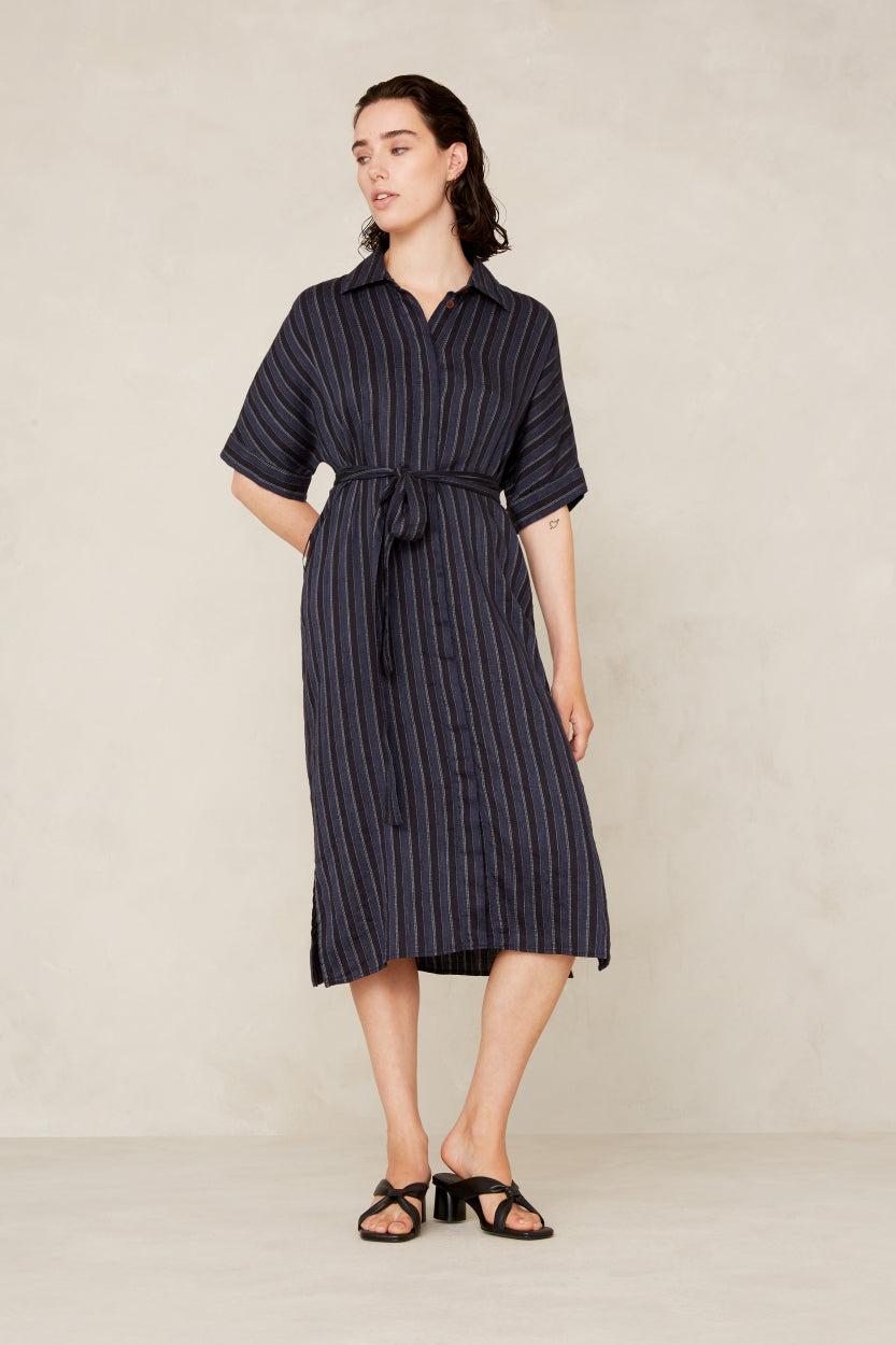 Regular fit shirt dress with short sleeves and a hidden button closure.
