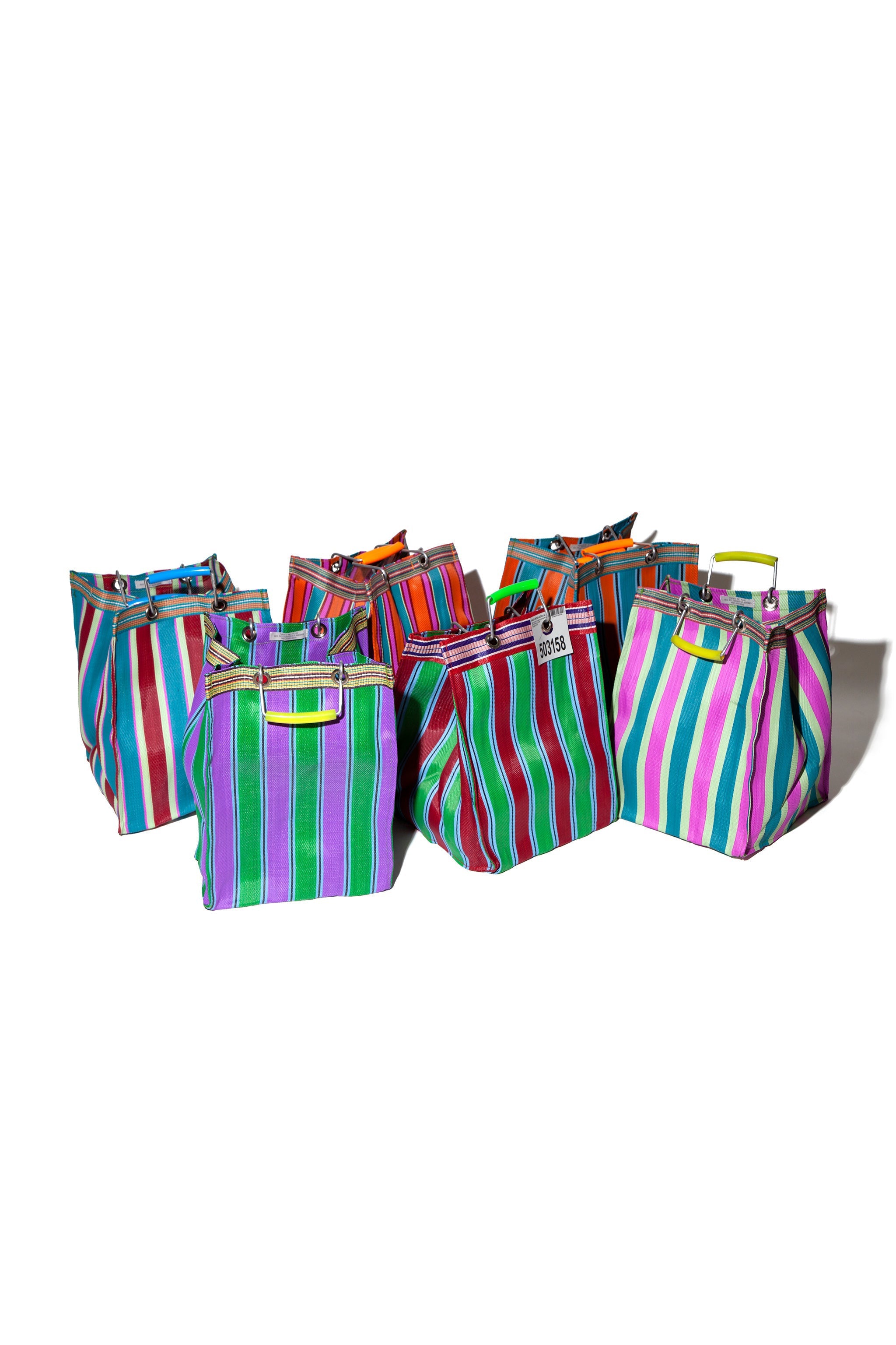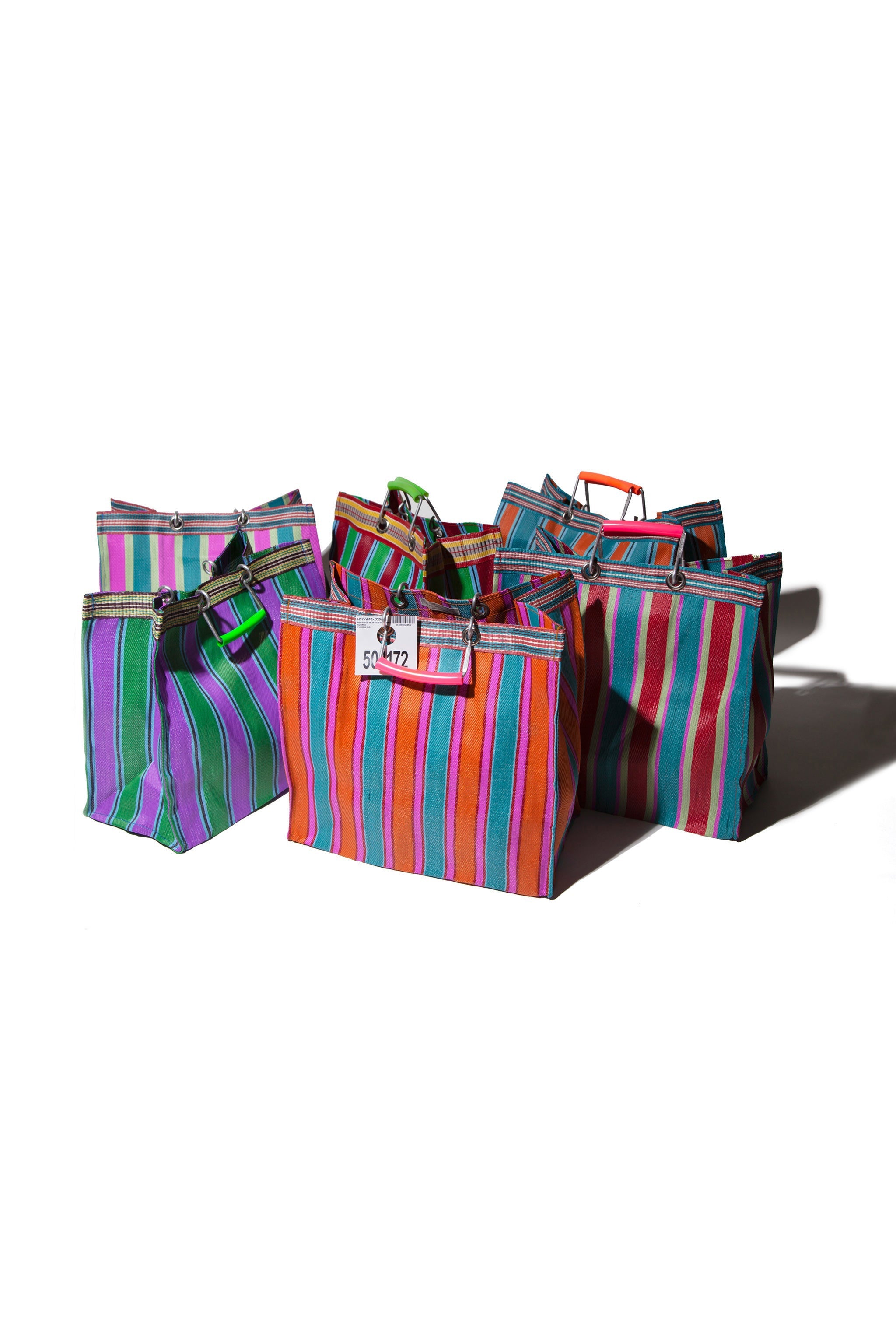 Recycled Plastic Stripe Bag / Wide D17 | Green x Pink