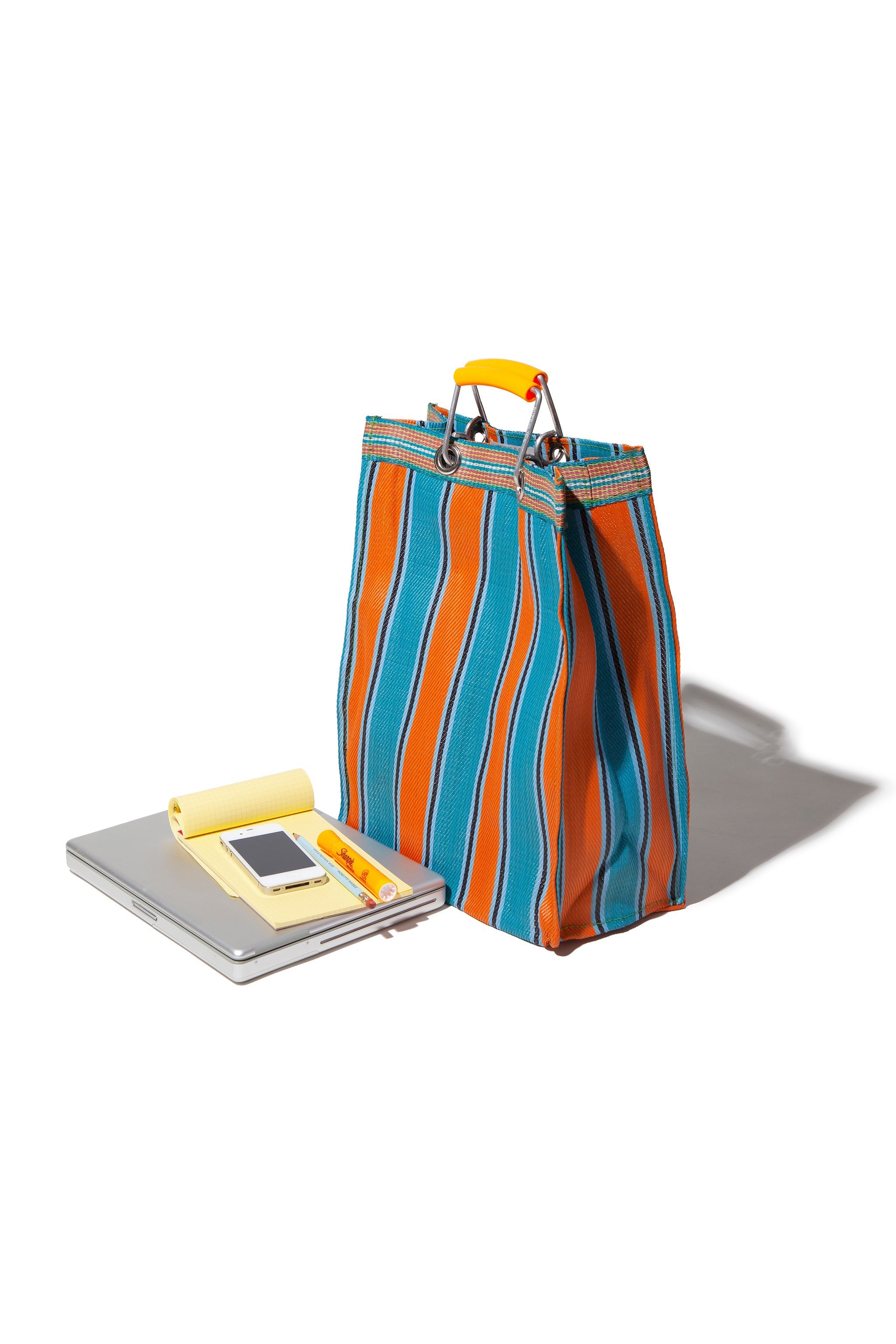 Recycled Plastic Stripe Bag / Rectangle D26 | Orange x Blue