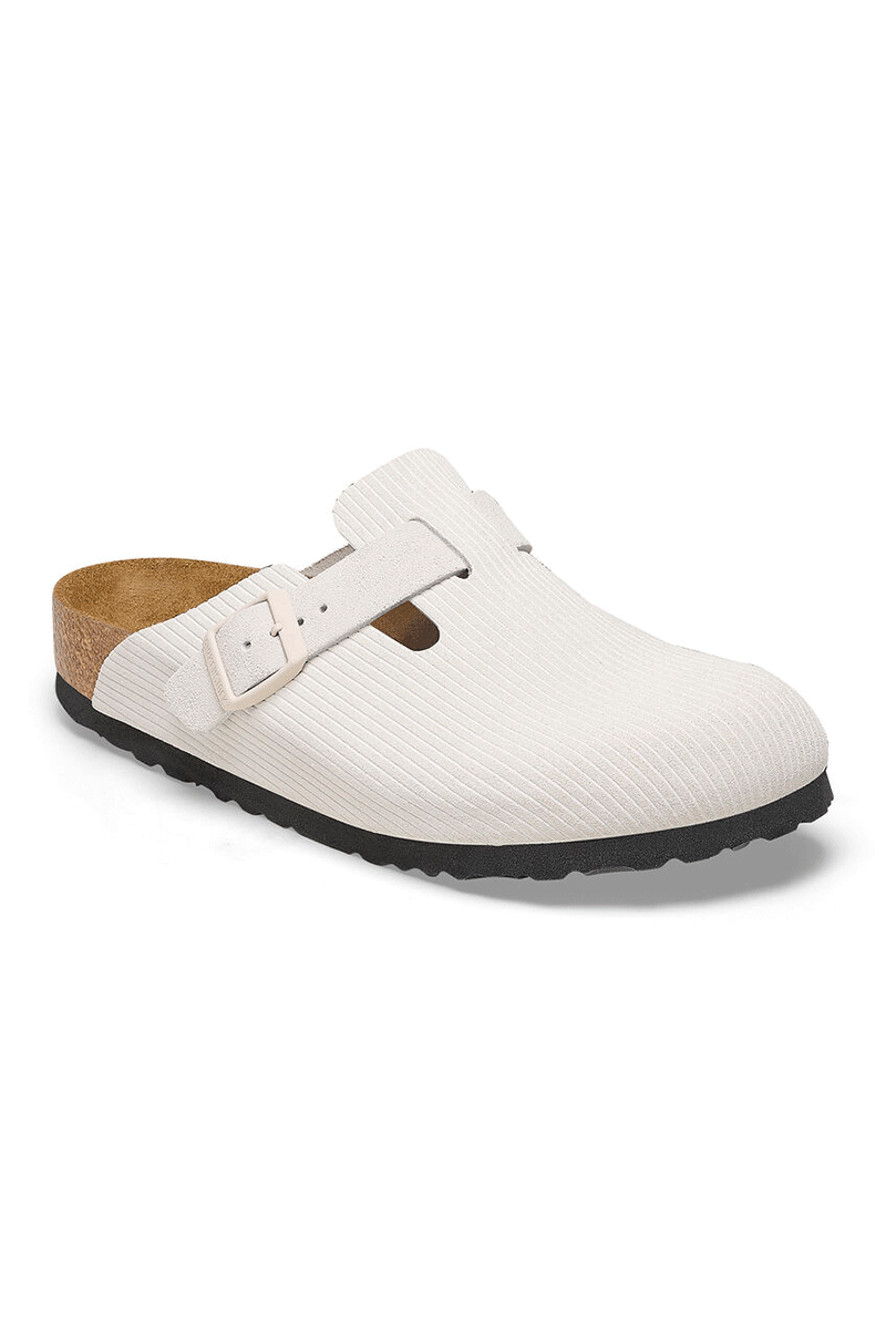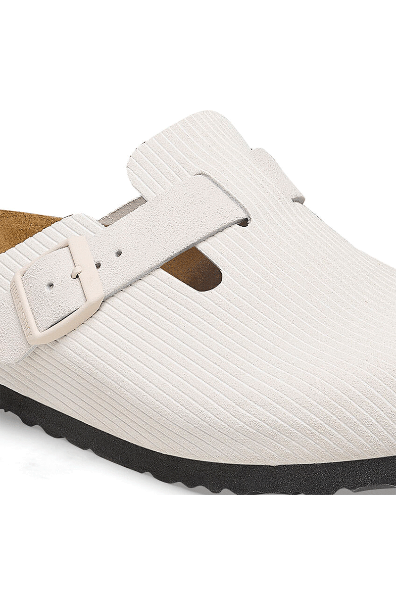 So classic and consistently comfortable, the Boston clog has become a coveted, year-round favorite. This season, embossed suede takes on the style of corduroy for a crafted quality that's as soft as it is durable. It's all grounded in the comfort of our contoured footbed, designed to shape to you with wear.