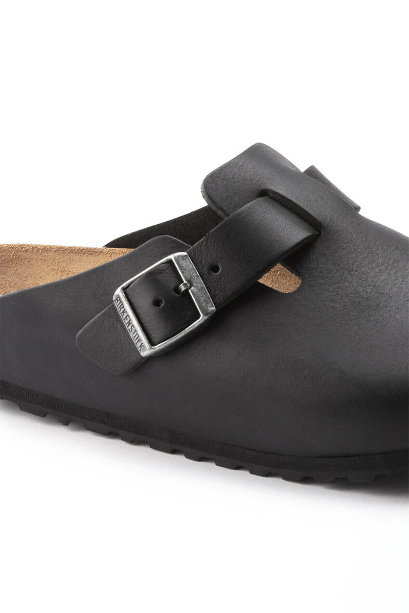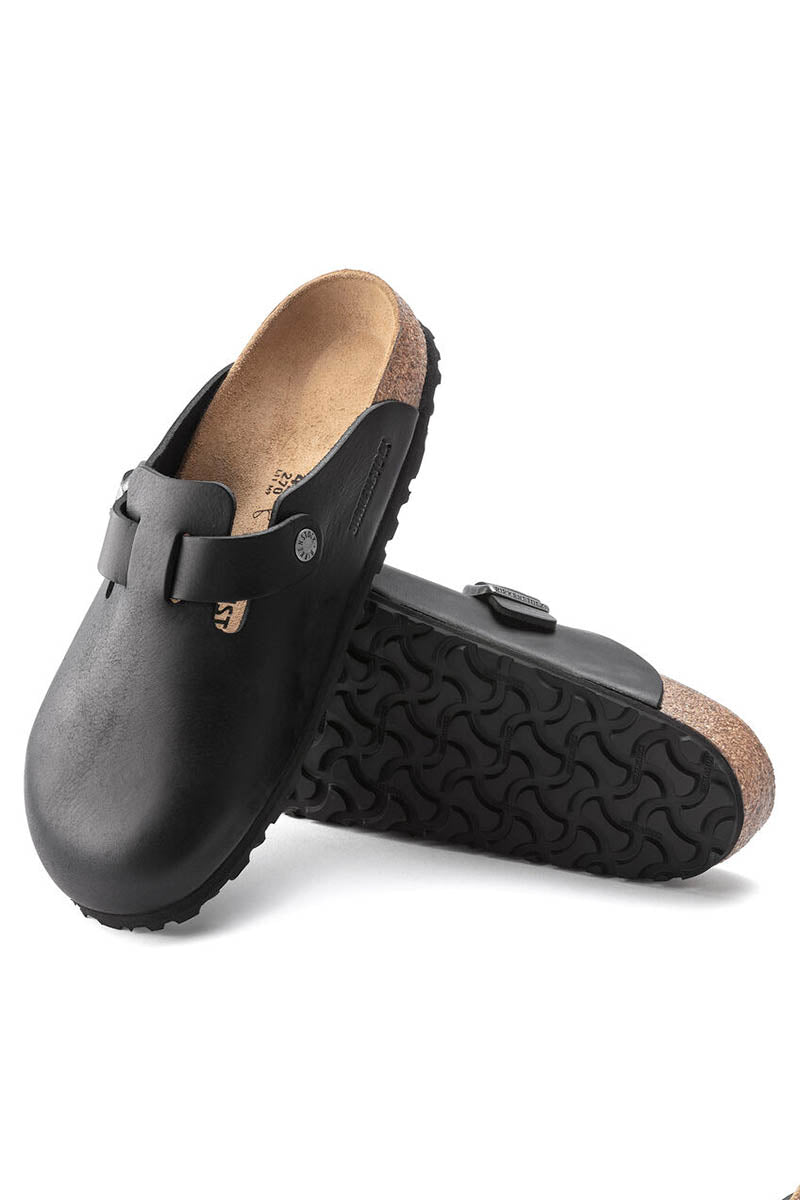 The Birkenstock Boston is a practical classic that can easily be worn all year round. Thanks to its sophisticated design, the Boston clog has achieved a legendary status. Â This style features a rubber grip sole. Equipped with a strap and buckle that can be adjusted across your instep, the Birkenstock Boston provides a perfect fit.