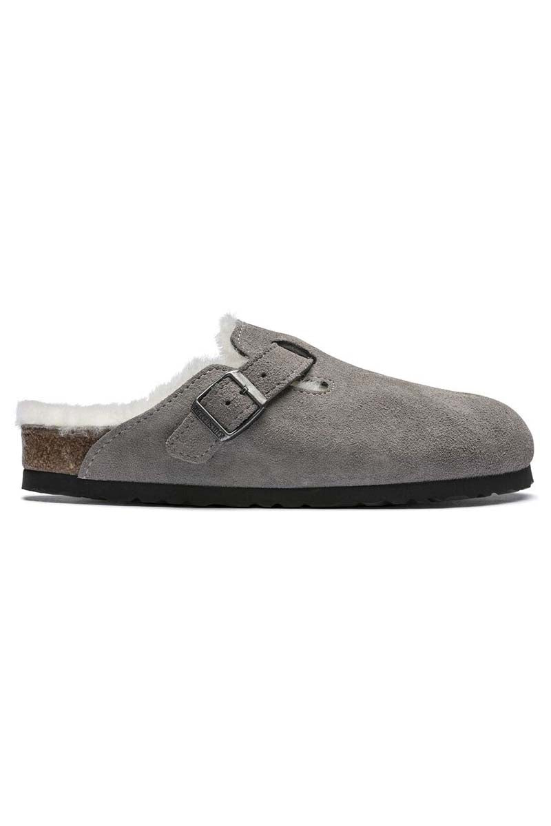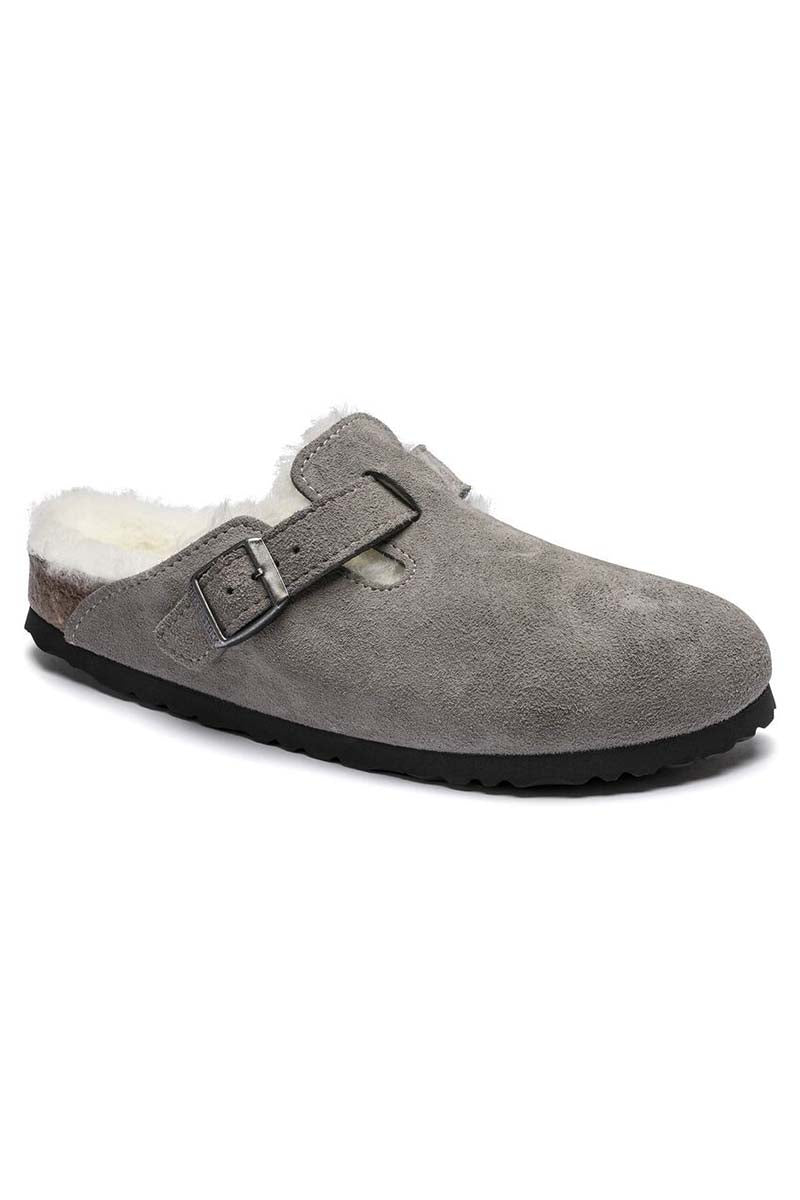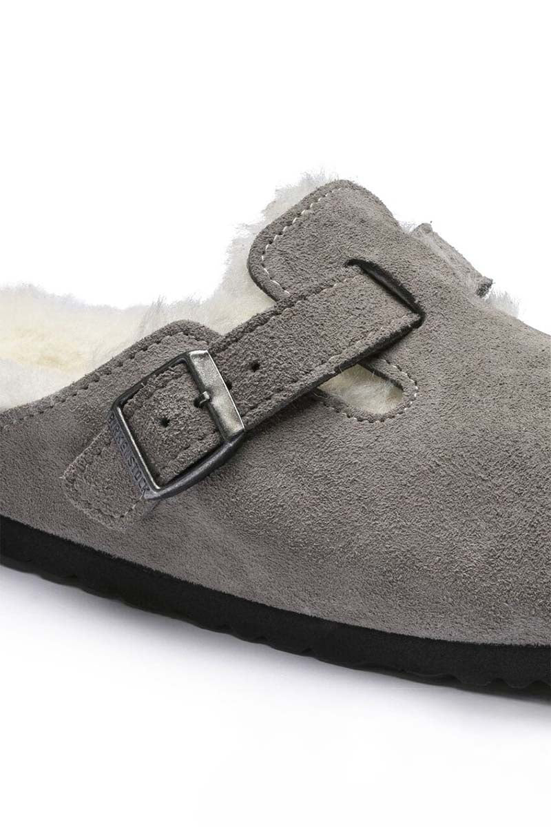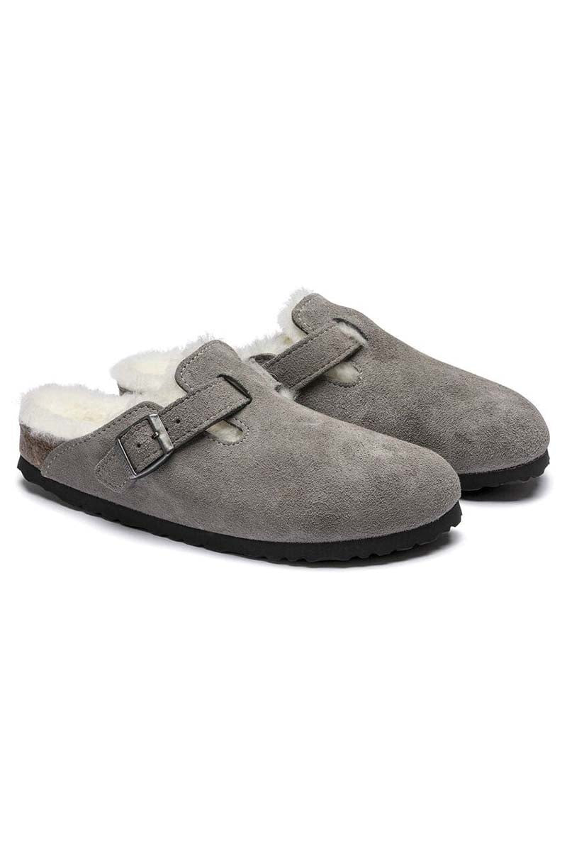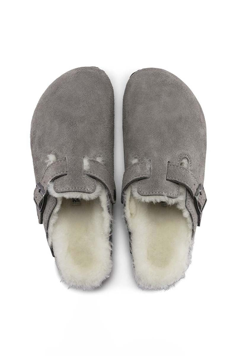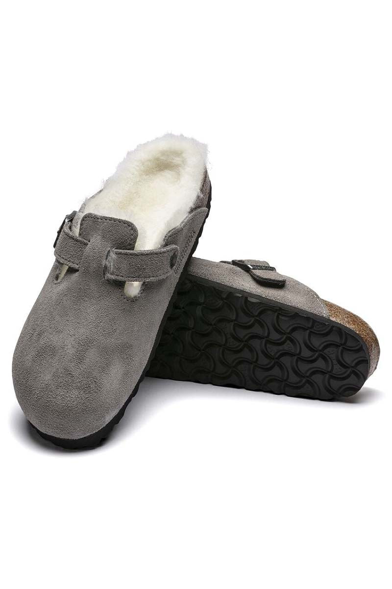 This exceptionally cosy version of the Boston clog, a classic Birkenstock model, is made of real, high-quality suede. The shearling lined footbed and uppers exudes style and keeps feet warm. The perfect shoe for cosy winter evenings.