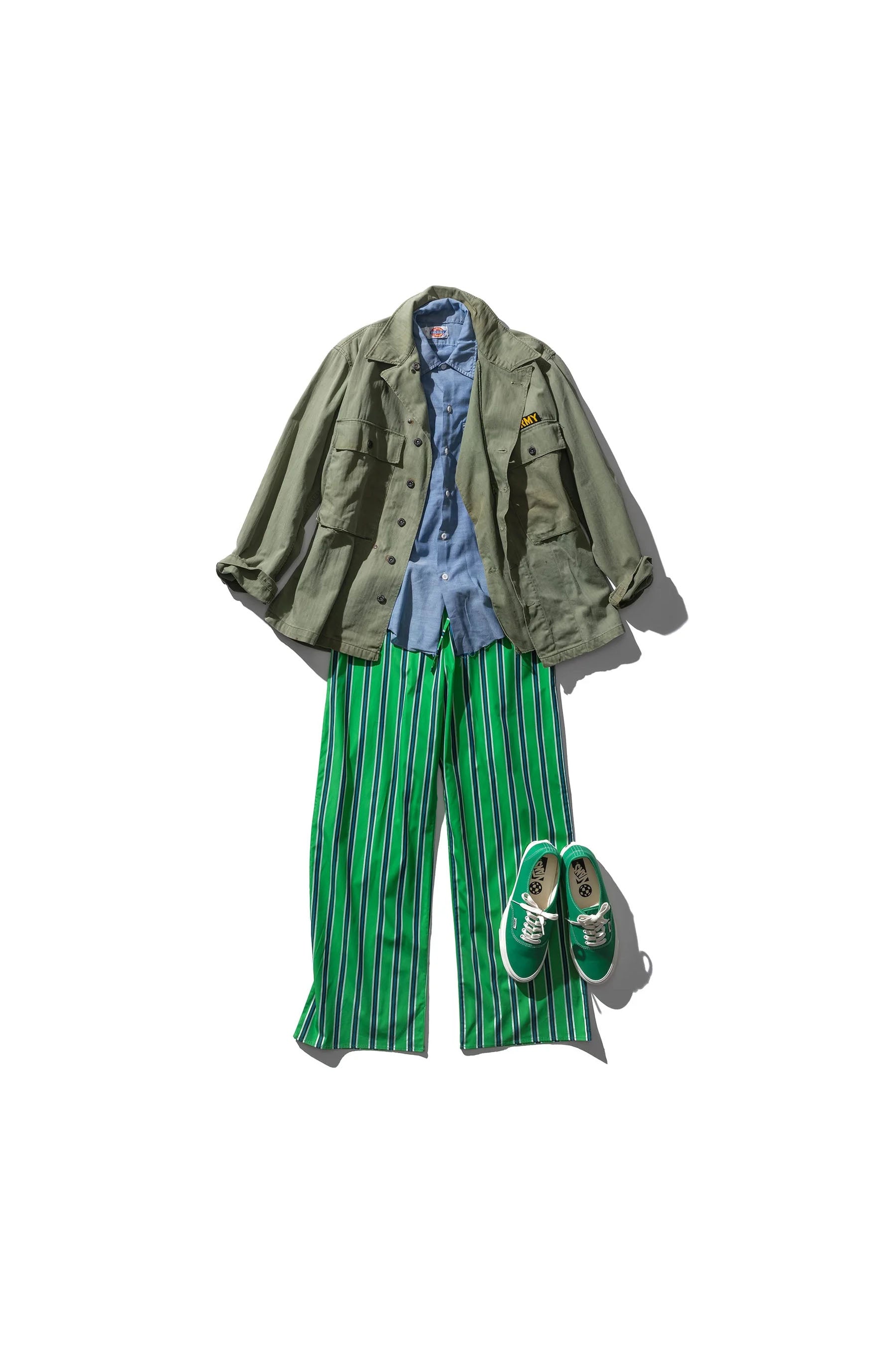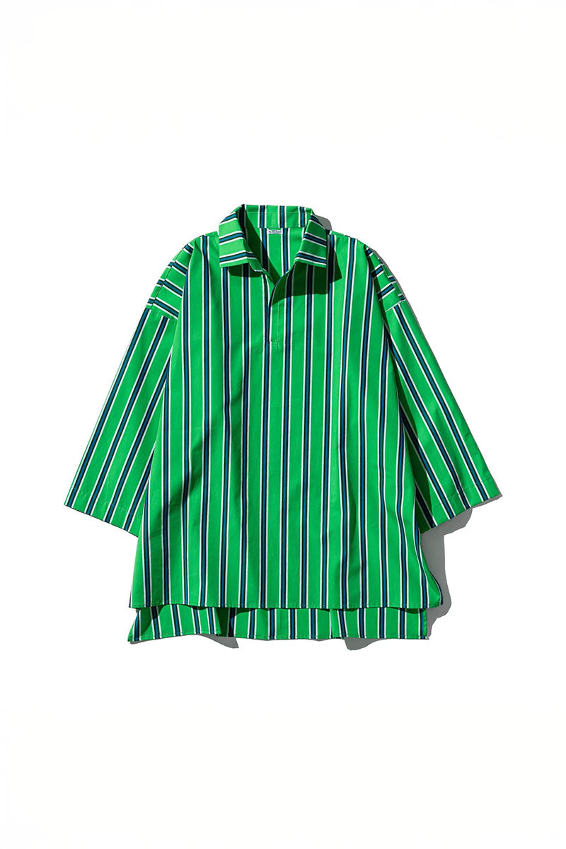 Cotton Stripe Shirt Regular Collar | Green