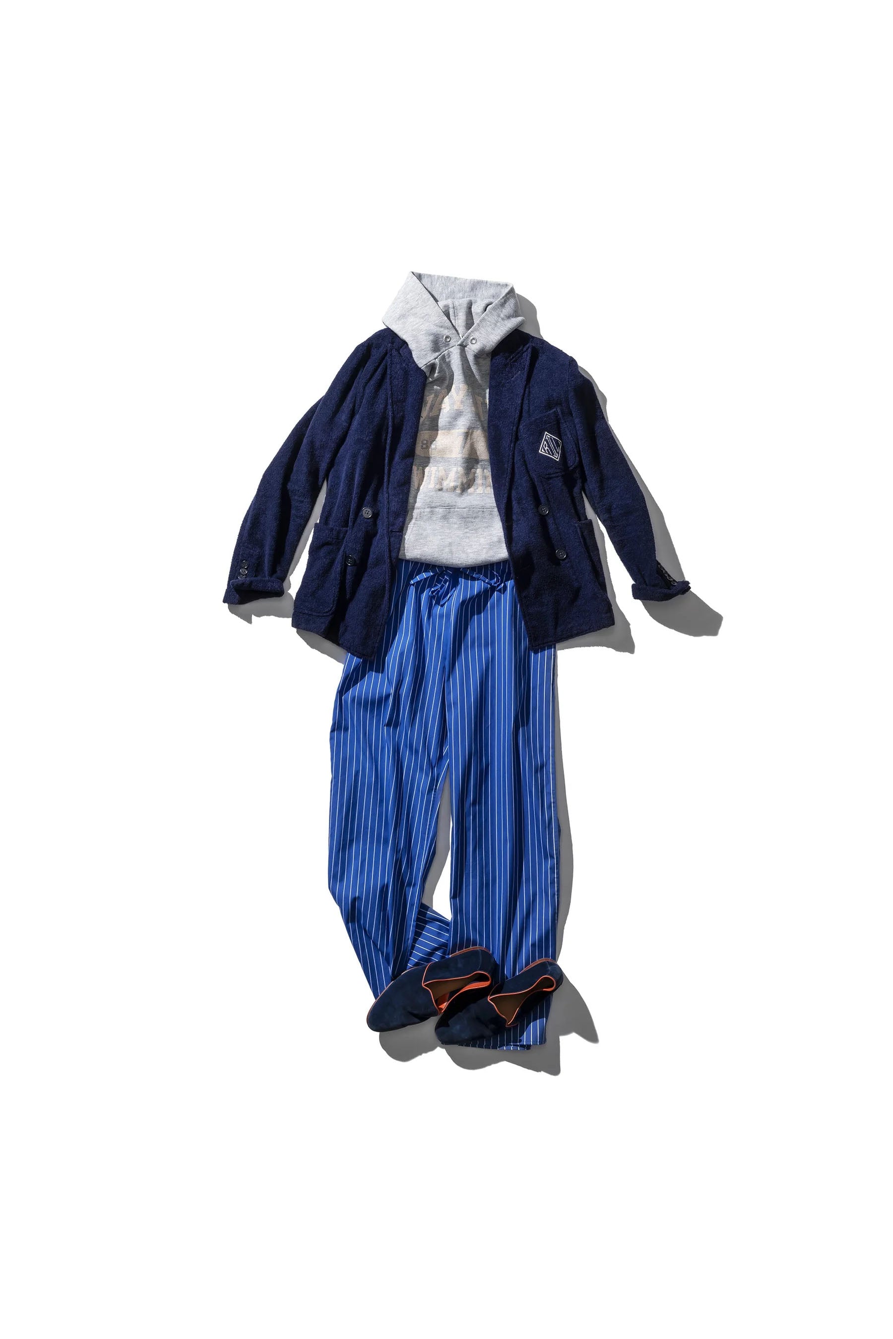 Cotton Stripe Regular Pants | Blue