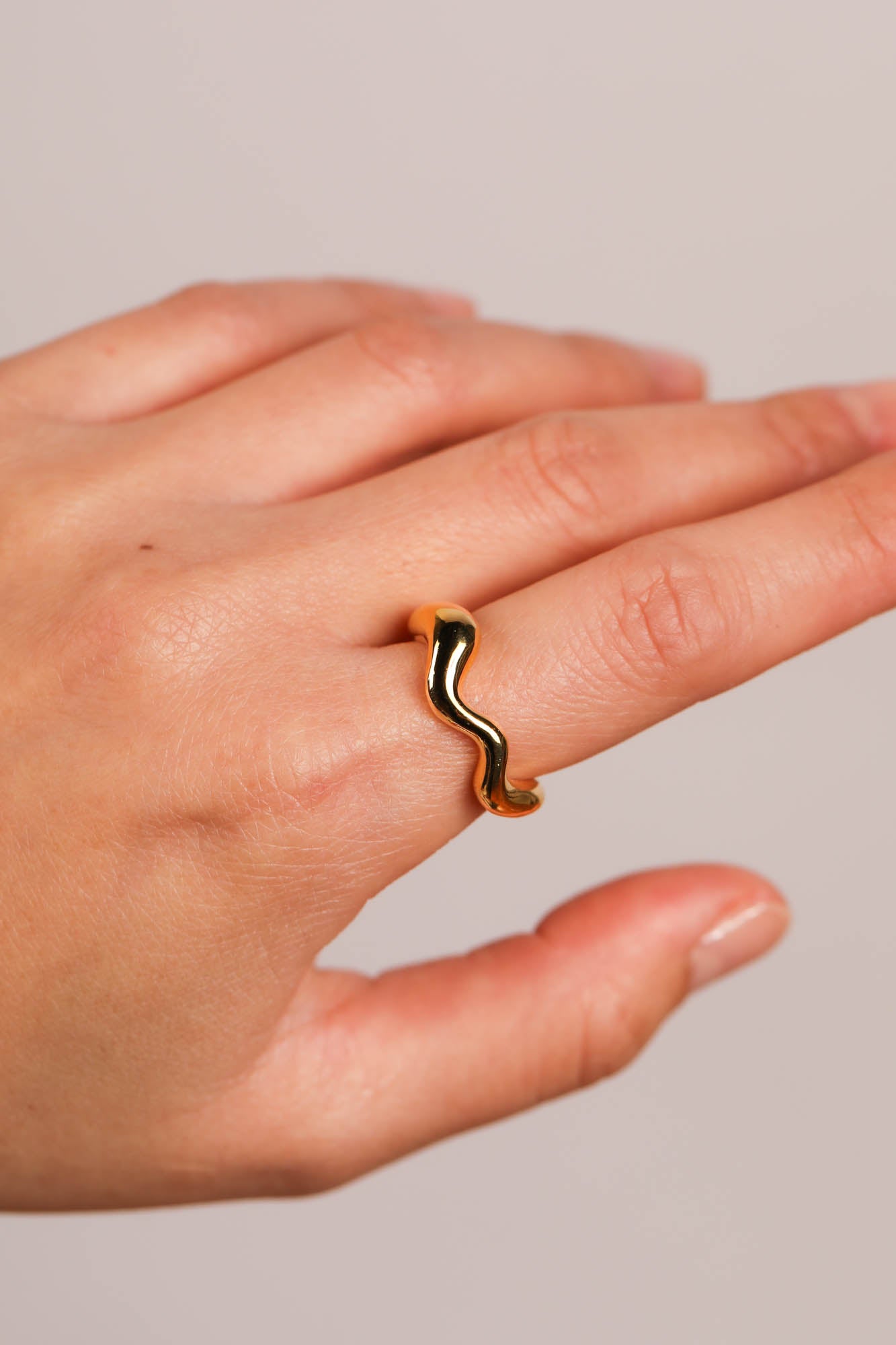 The Wave Ring, in 22K Gold Plated Sterling Silver, is the perfect addition to any jewellery collection.