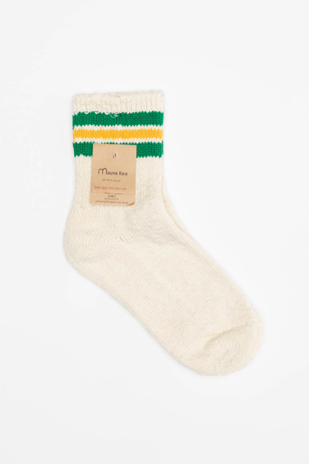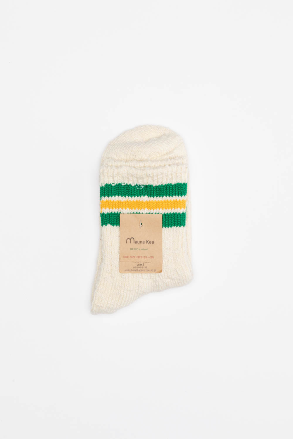 Slub Nep 3 Stripe Socks | Green x Yellow