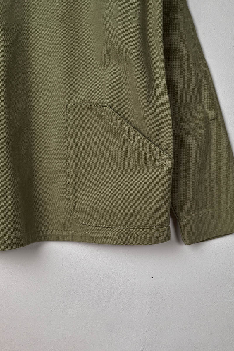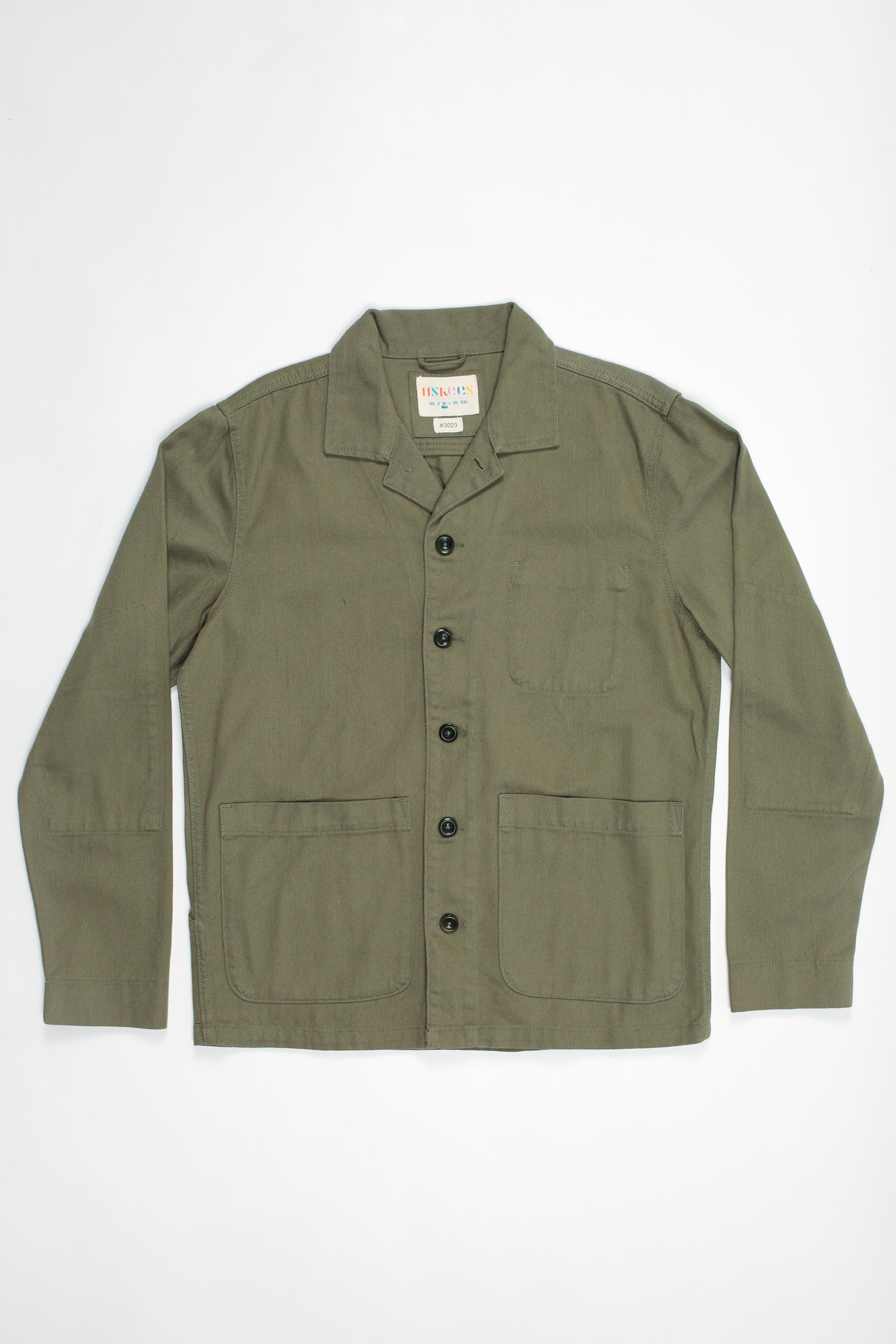 This heavyweight drill commuter blazer is designed with cyclists in mind. Details feature inforced elbow patches, button up to lapel styling, back pocket ,and deadstock buttons from discontinued Uskees pieces. Drill will mould to your shape wear after wear, creating a piece with a unique character.