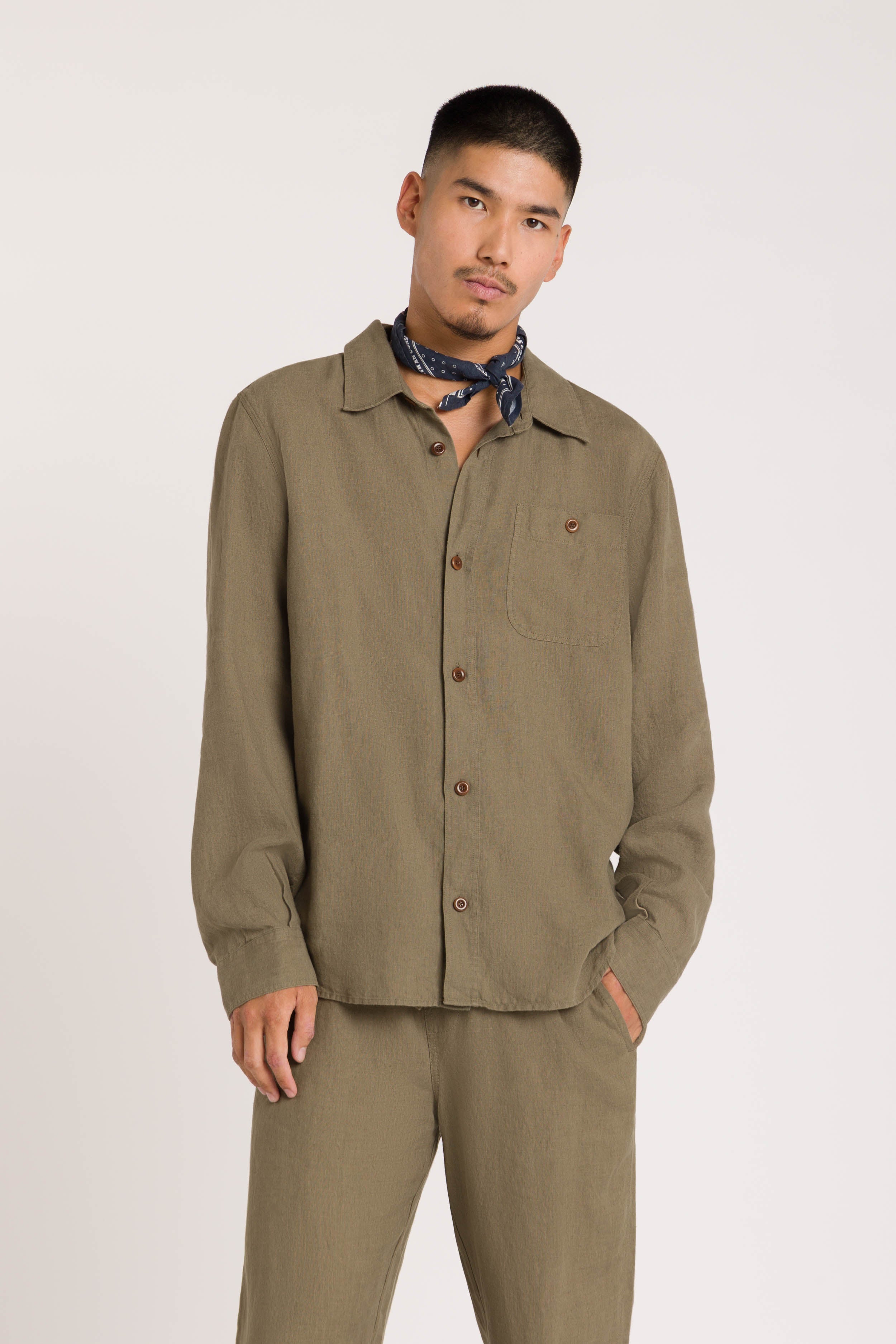 Relaxed fit overshirt with a spread collar and an American button placket.