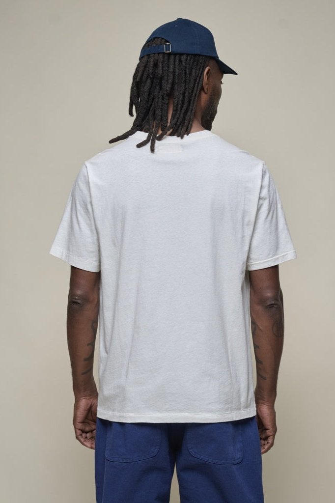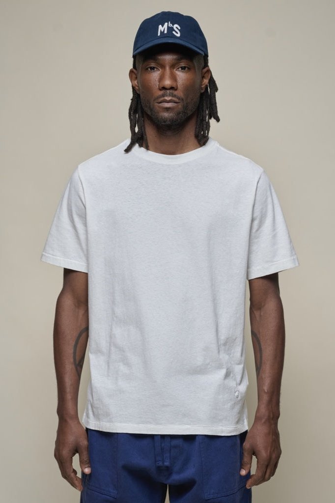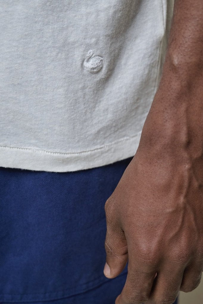 This piece is truly special thanks to its organic cotton and hemp blend. The organic cotton ensures a soft and breathable feel on your skin while adding hemp adds strength and durability to the fabric. Thanks to its structured, stubby surface and its relaxed fit, it gains an extra cool appearance. Moreover, It is part of Merz b. Schwanen's ALL PLANT-BASED – ALL GOOD line, meaning every component of this piece is crafted and derived from renewable plant sources, making it the ultimate sustainable choice. It's completely regenerative. This T-shirt's timeless design and versatile appeal effortlessly complement every summer look.