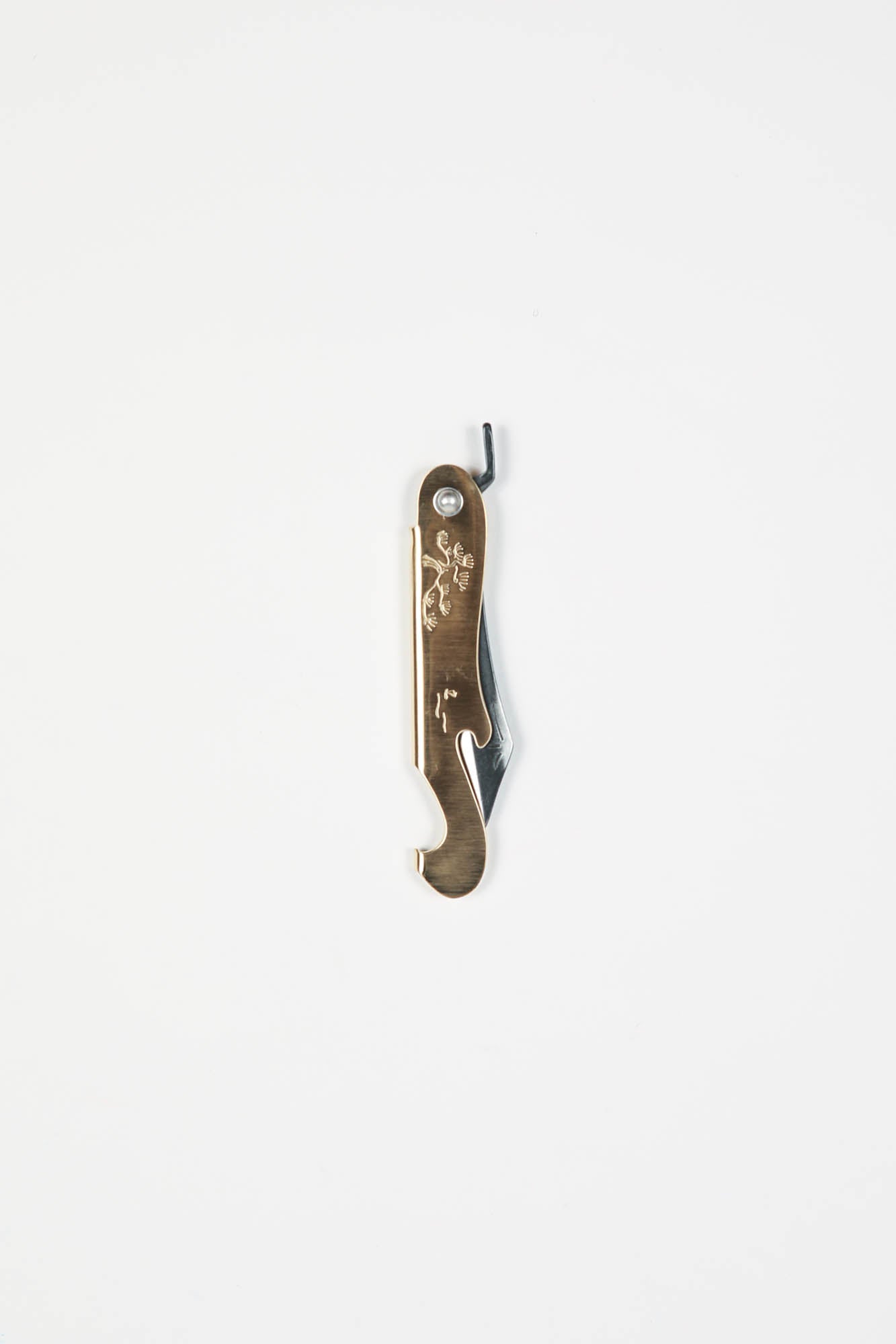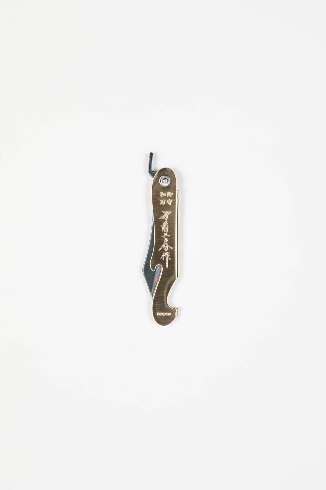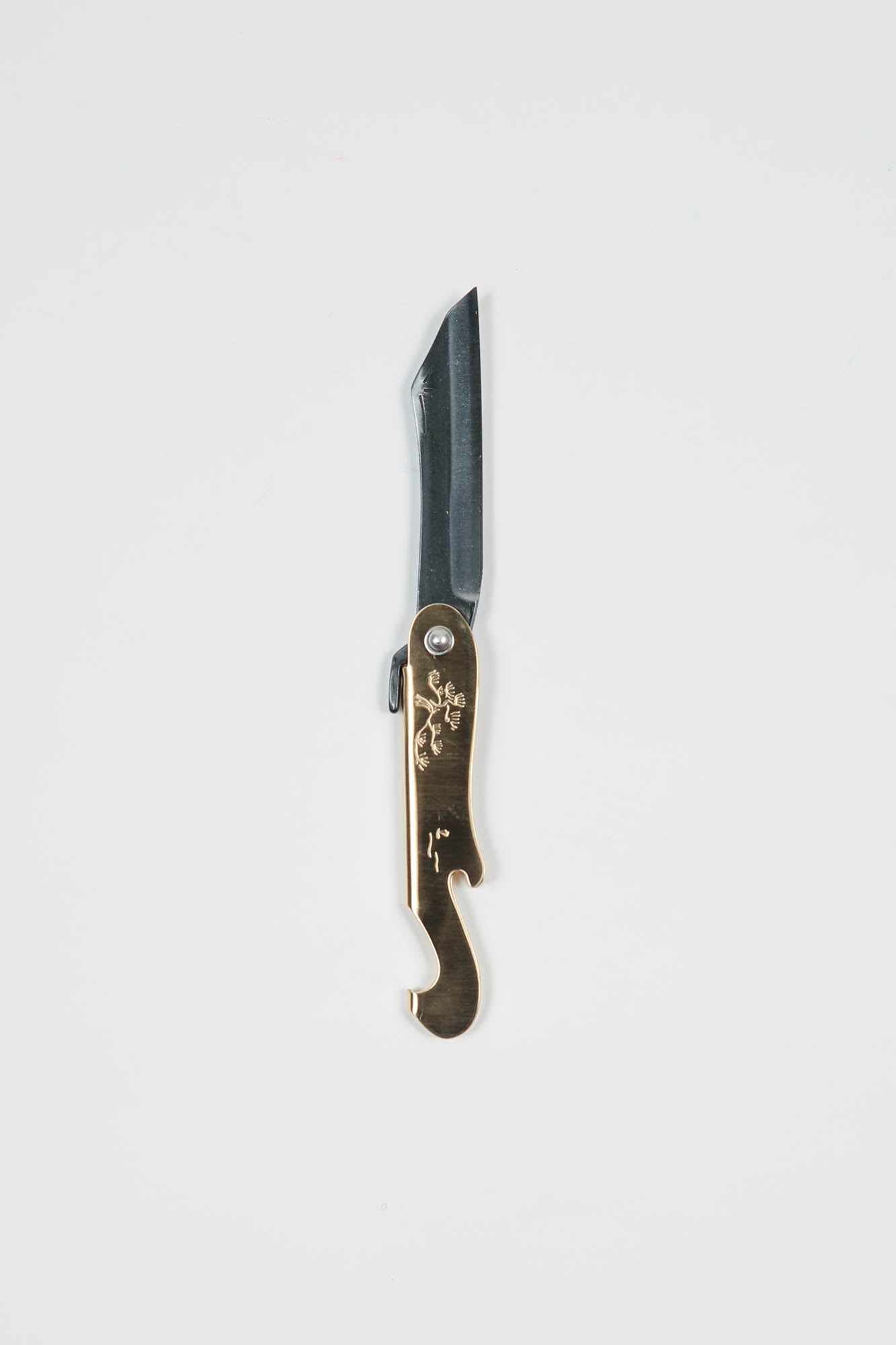 The Fuji Knife by Mujun is a multipurpose double bevel foldable knife and bottle opener. When the knife is closed, the combination of the engraving on the blade and brass handle depict an image Mt. Fuji viewed from the famous Miho Peninsula. The brass handle will developed a patina over time, a measurement of the love and enjoyment of the knife in your possession.