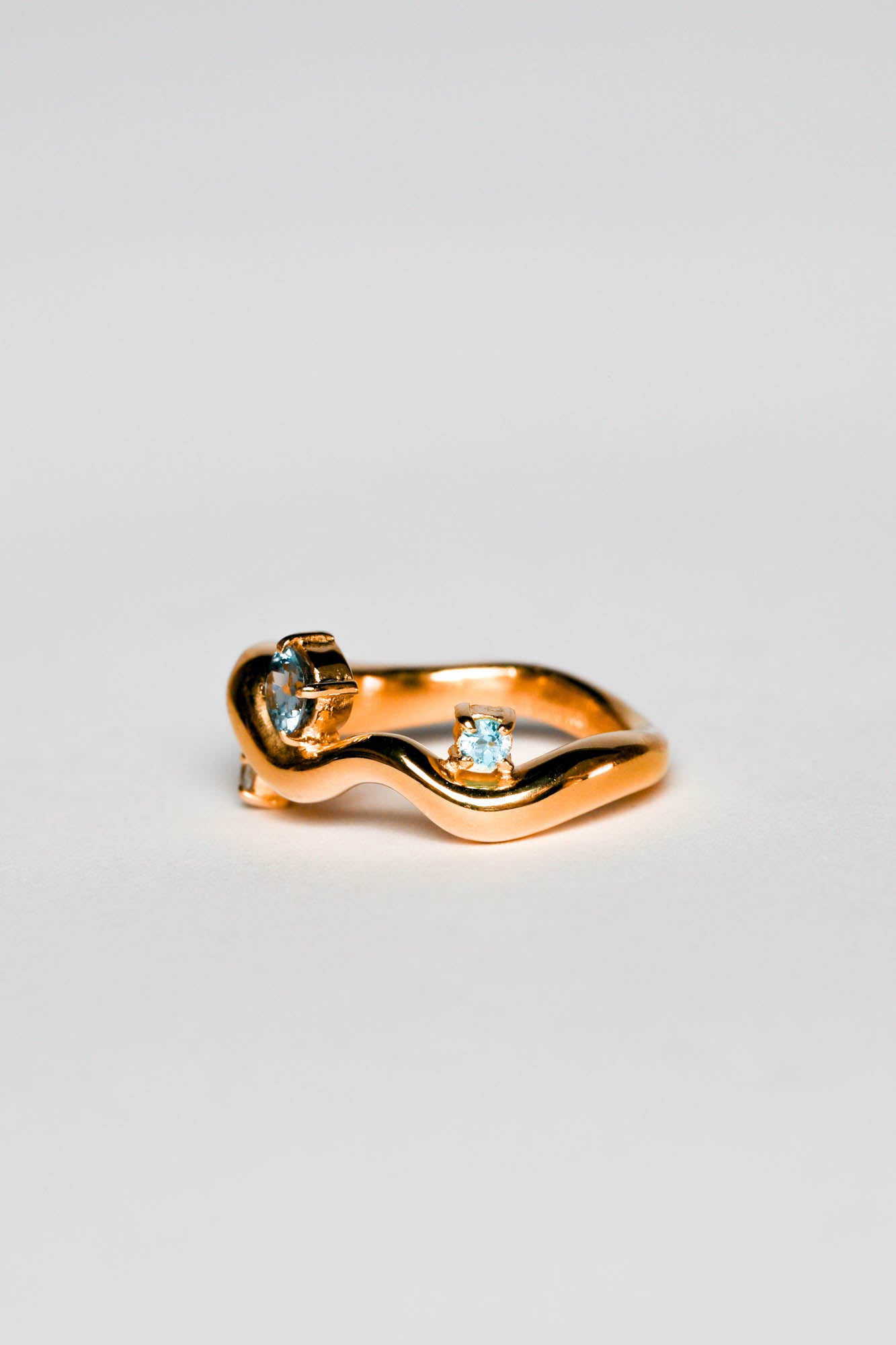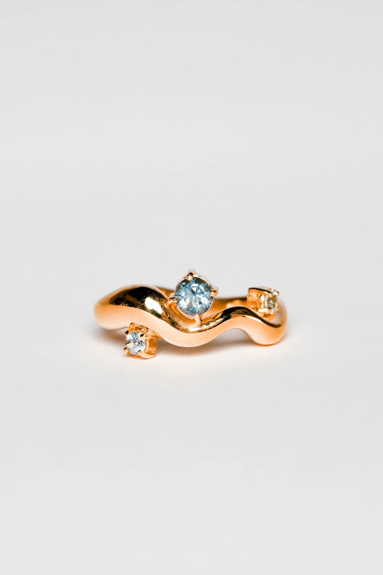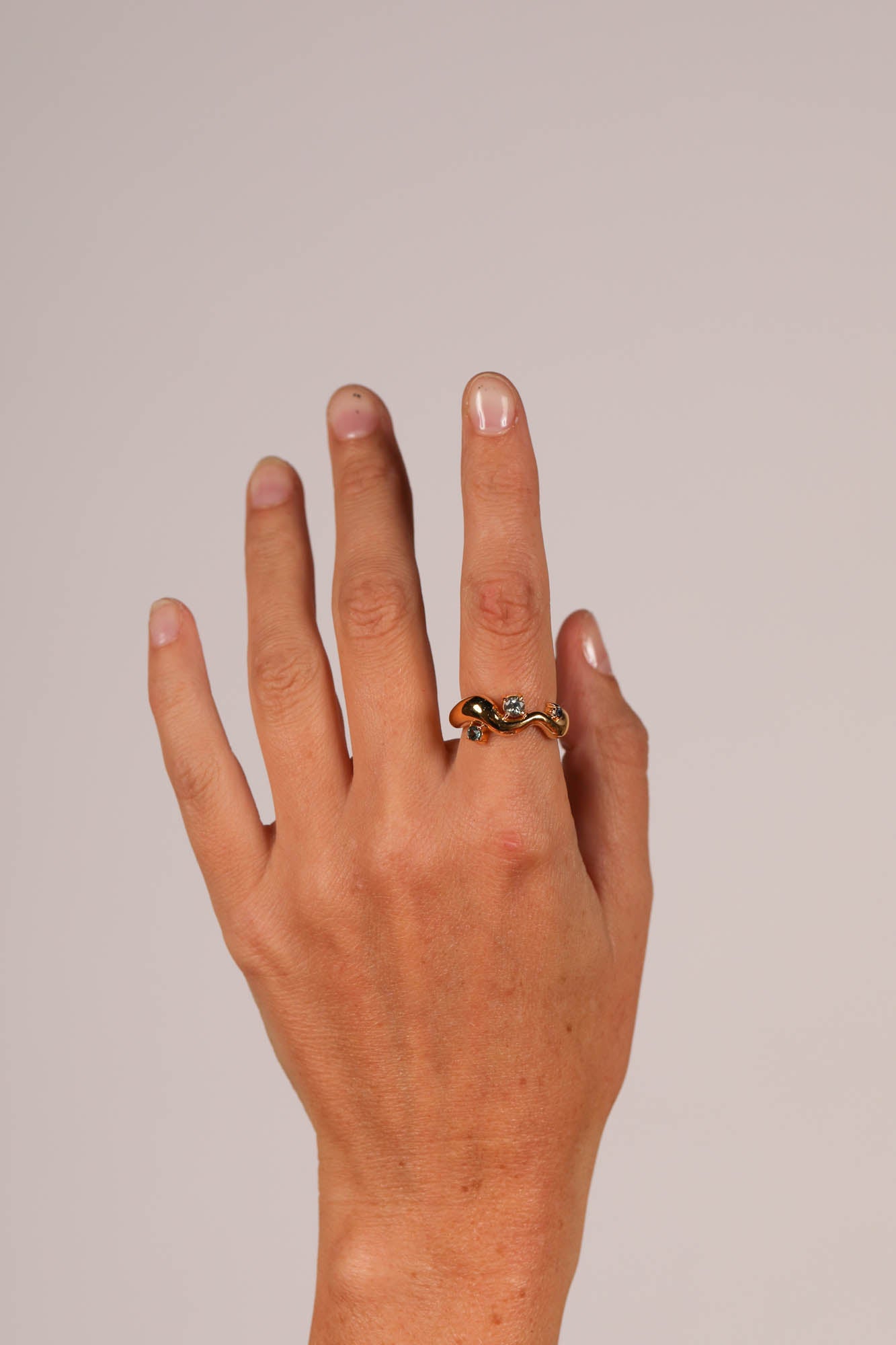 Wave Ring Gold with 3 Stones # 2 | Size 8