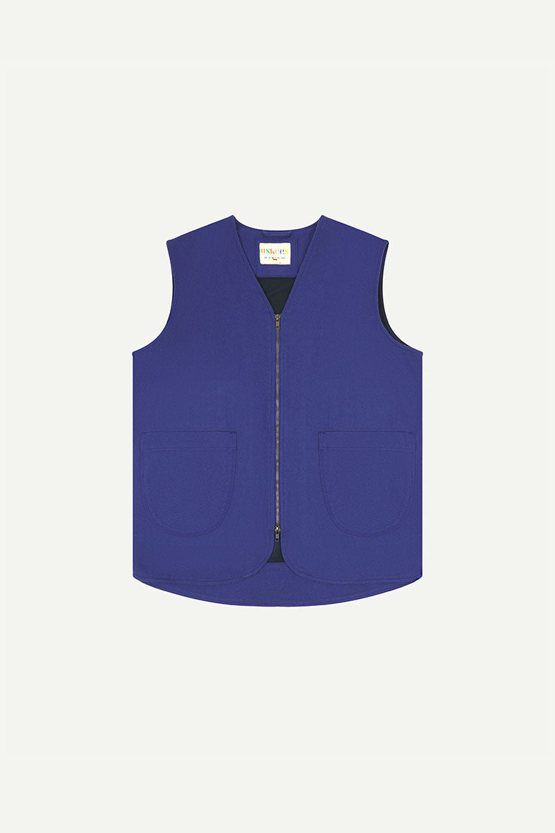 Organic cotton drill is a heavy brushed cotton in a strong weave, meaning it’s soft and durable. This zip up vest is minimal and clean in design, offering a simple and contemporary layer to any look. Featuring two front patch pockets and a YKK zip.