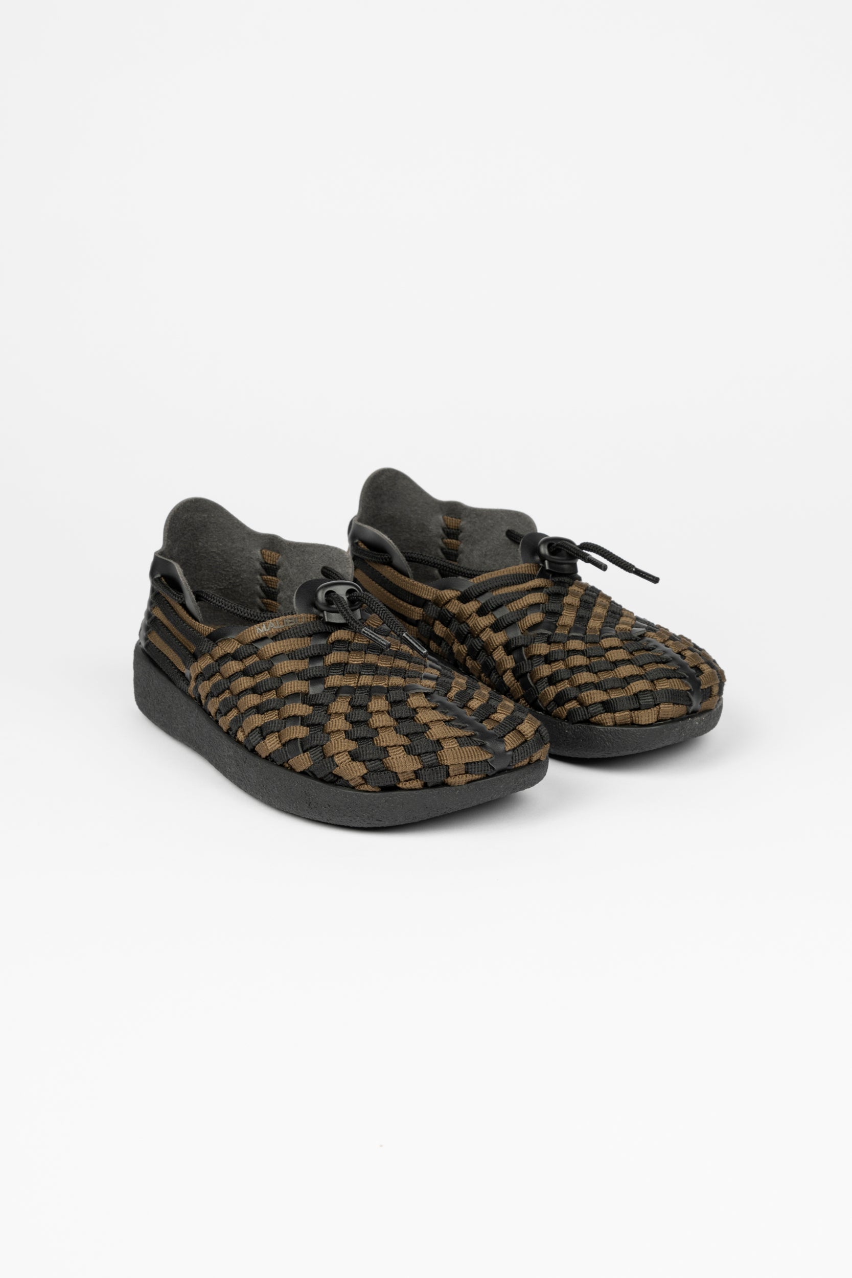 Latigo sneaker is handwoven with vegan leather and polyester with adjustable toggle strap. Malibu Sandal's 3-piece outsole features a soft anatomically correct polyurethane footbed for a super comfortable fit, a sturdy phylon midsole for strong structural support and a durable rubber crepe sole for ideal traction.