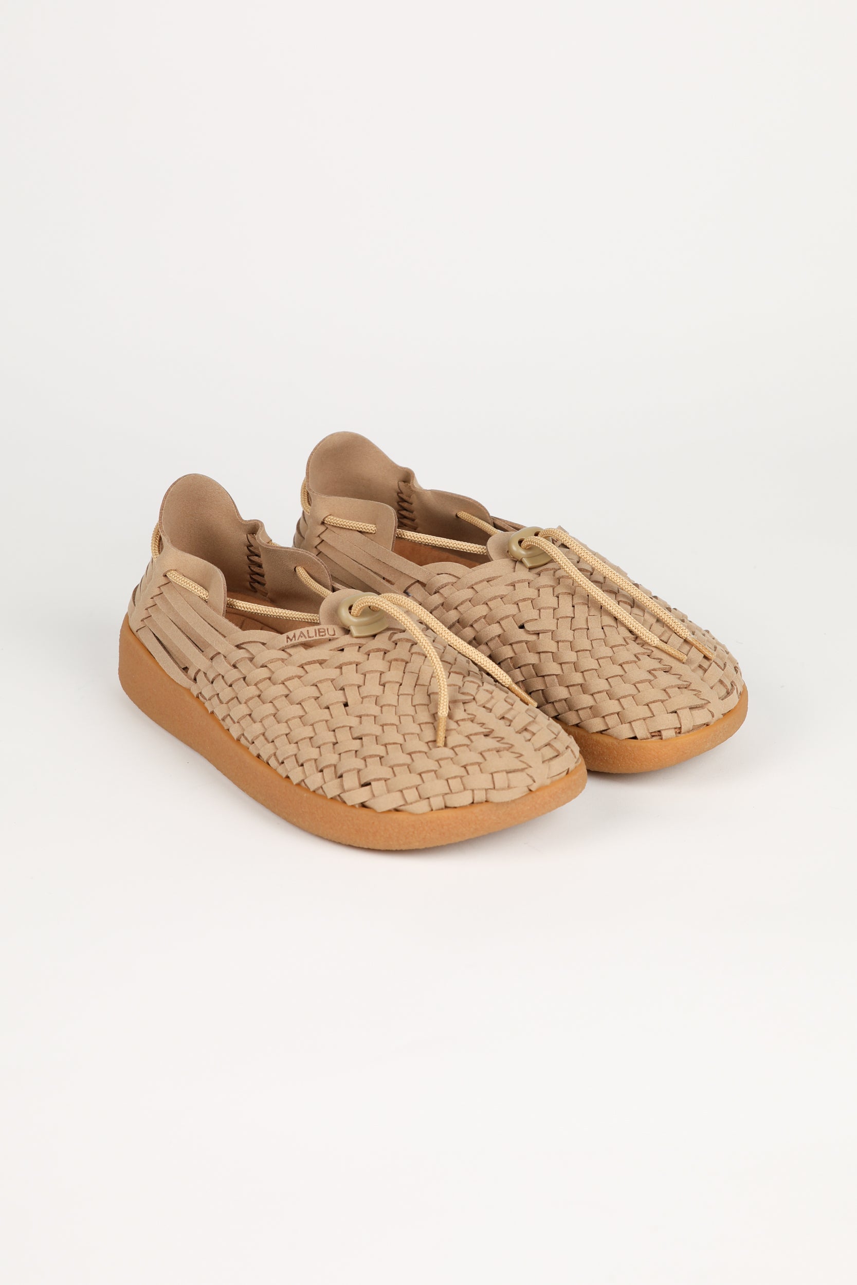 Latigo sneaker is handwoven with vegan leather and polyester with adjustable toggle strap. Malibu Sandal's 3-piece outsole features a soft anatomically correct polyurethane footbed for a super comfortable fit, a sturdy phylon midsole for strong structural support and a durable rubber crepe sole for ideal traction.