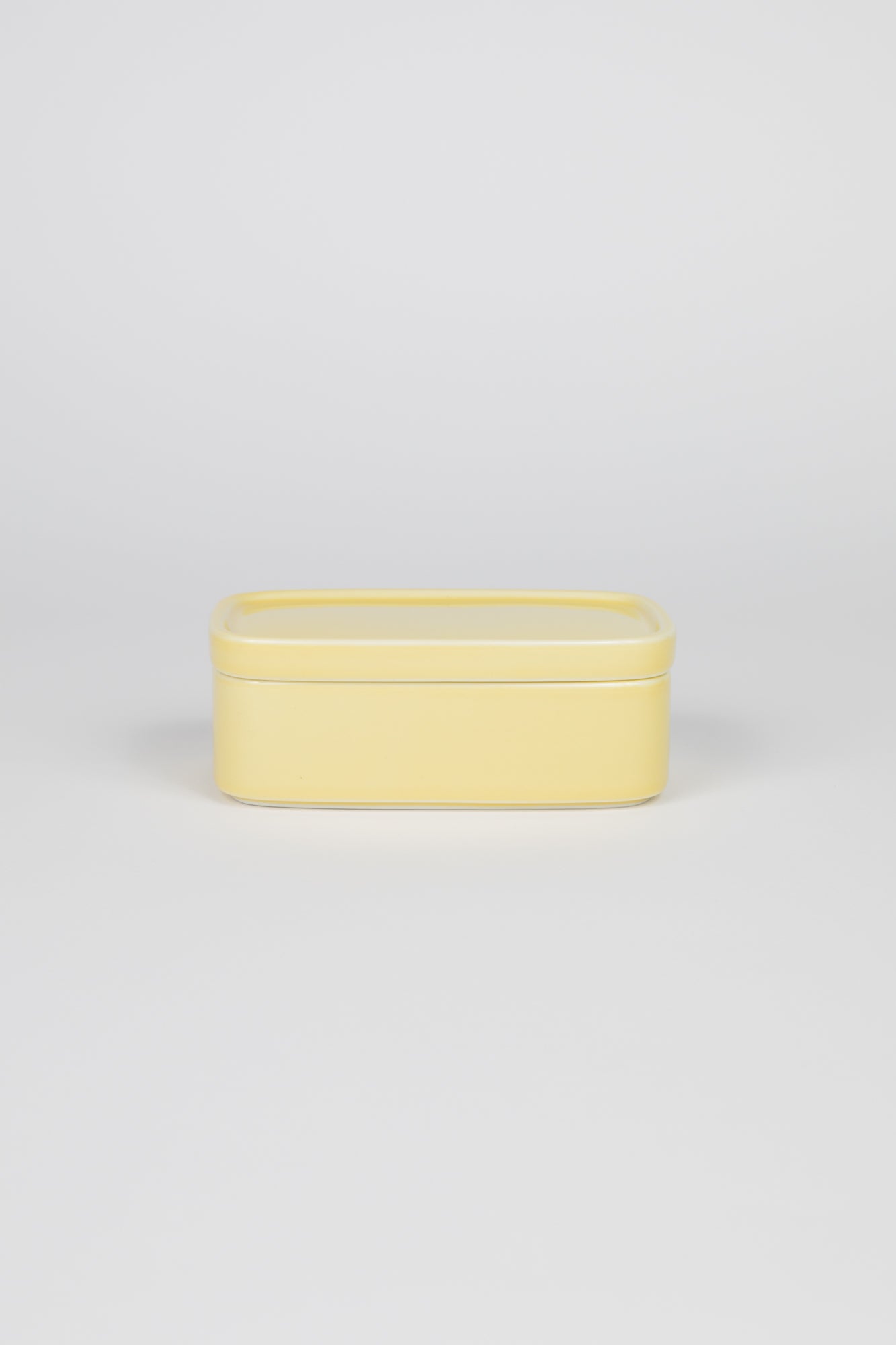A classic Butter Case by Hakusan. This lidded porcerlain buttercaseis expression of functional, minimal Japanese design featuring rounded corners, glazed with soft, yet saturated colours suitable for any kitchen.