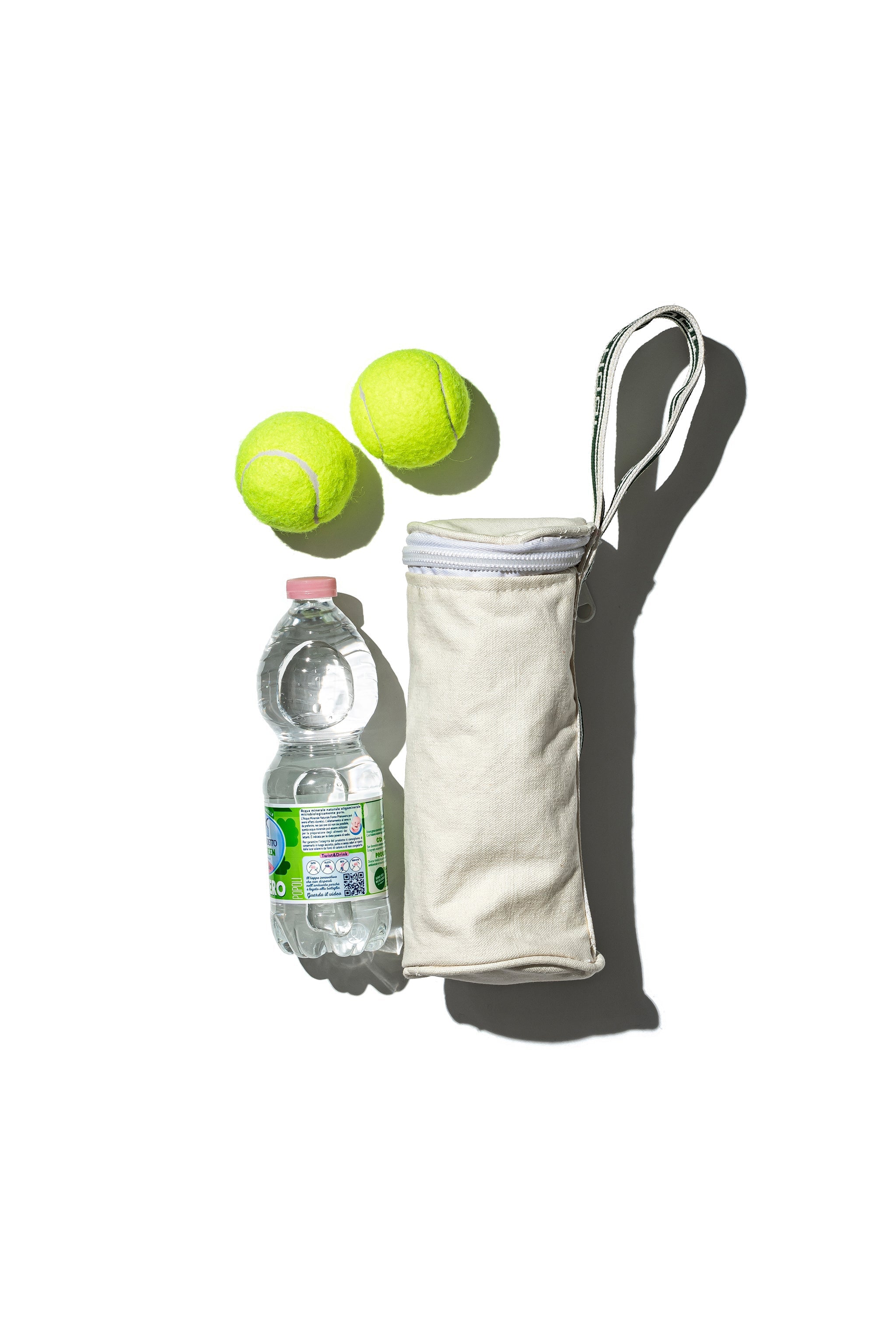 Made from sturdy cotton canvas, the Clubhouse Ball Bag features a zip enclosure and a branded handle with “PUEBCO TENNIS SCHOOL” detailing, giving it a subtle sporty edge. Compact and versatile, it's ideal for storing tennis balls or carrying a standard water bottle. Whether courtside or on the go, it’s a practical accessory with a hint of playful charm.