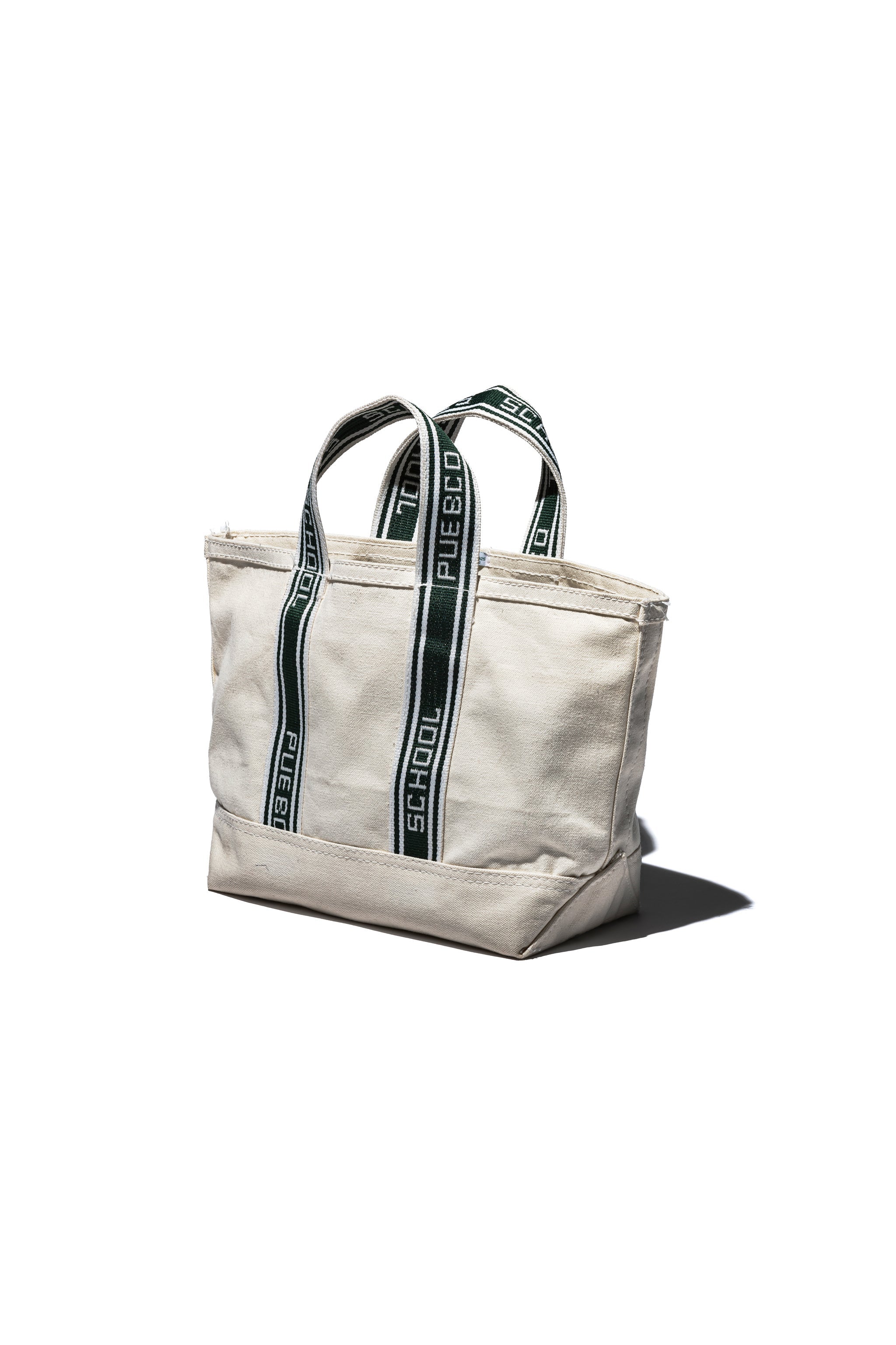 Made from sturdy cotton canvas, the Clubhouse Tote Bag offers a clean, functional design suitable for both everyday use and trips to the court. The handles feature woven "PUEBCO TENNIS SCHOOL" branding, adding a subtle nod to its athletic inspiration. Spacious and sturdy, it's a versatile carryall for your daily essentials or tennis gear.