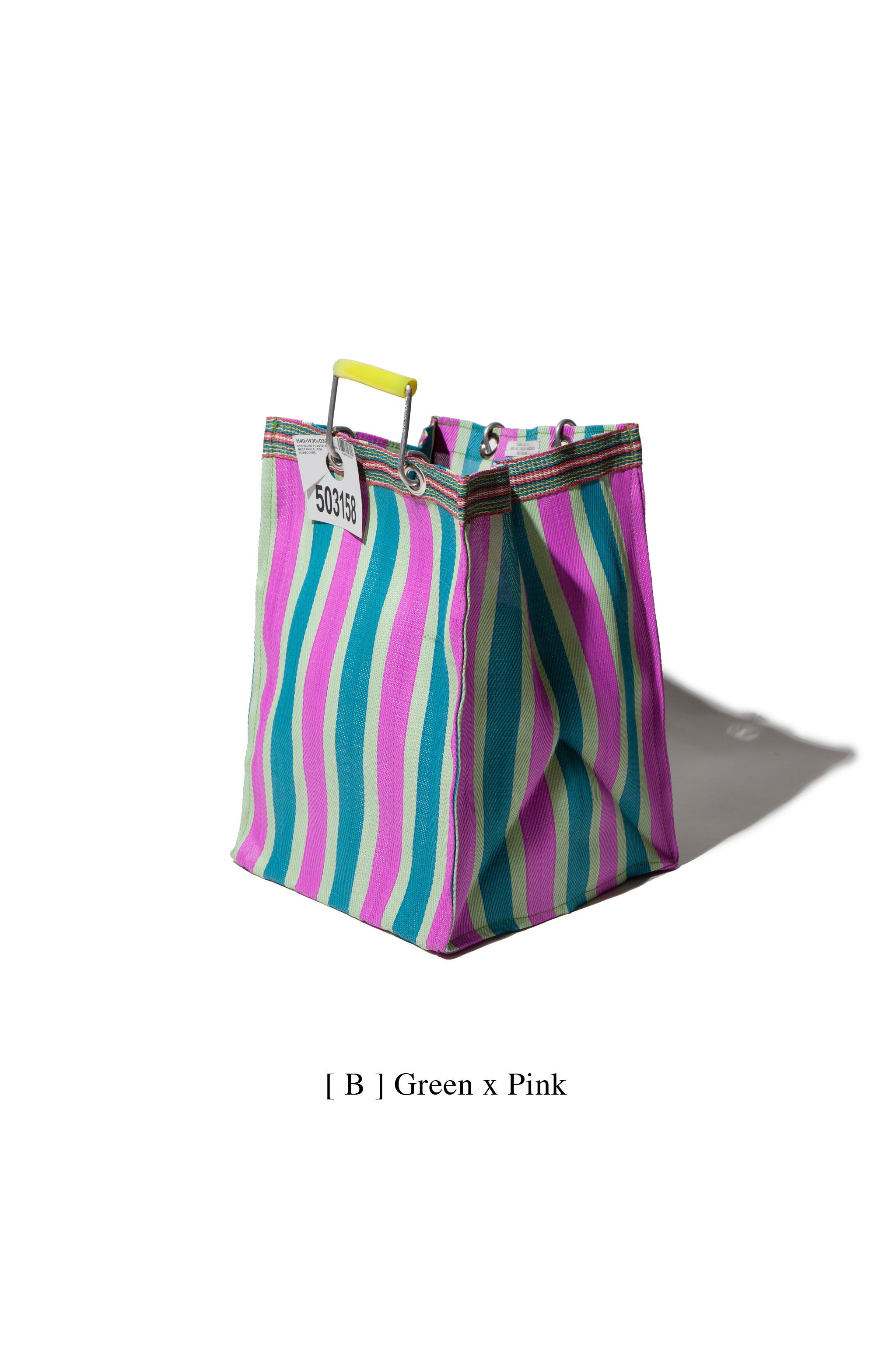 Recycled Plastic Stripe Bag / Rectangle D26 | Green x Pink
