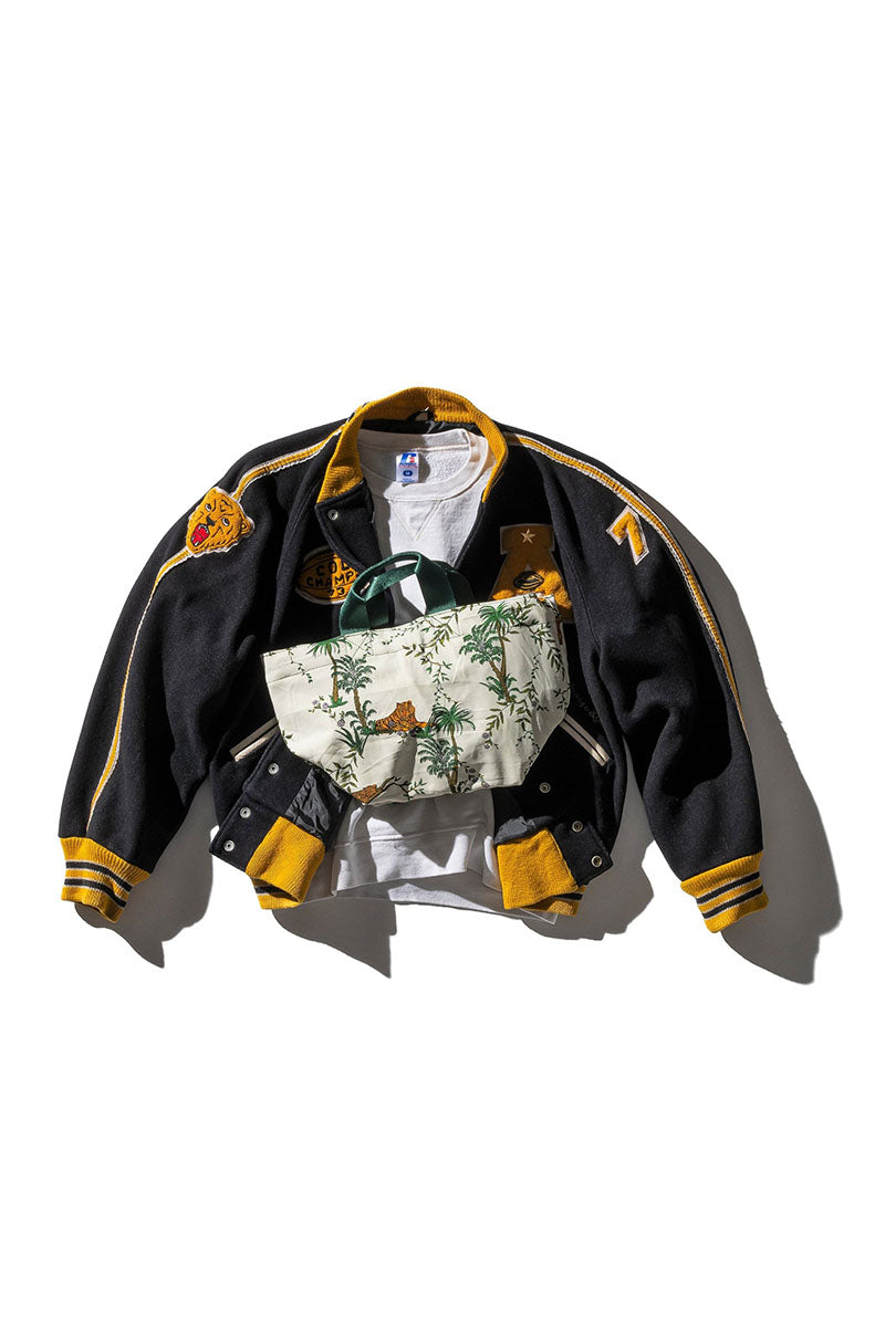 Crafted from reclaimed outdoor-canvas and tent fabric, the Vintage Tent Fabric with Printed Pattern Bag / Jungle reimagines rugged history as everyday utility. Bold jungle-inspired prints meet weathered texture—its marks, creases and faded patches are each part of the story. With sturdy handles and a structured silhouette, it carries your essentials with quiet depth and character. It’s more than a bag—it’s a lived-in companion for the city, the studio, or the weekend escape.