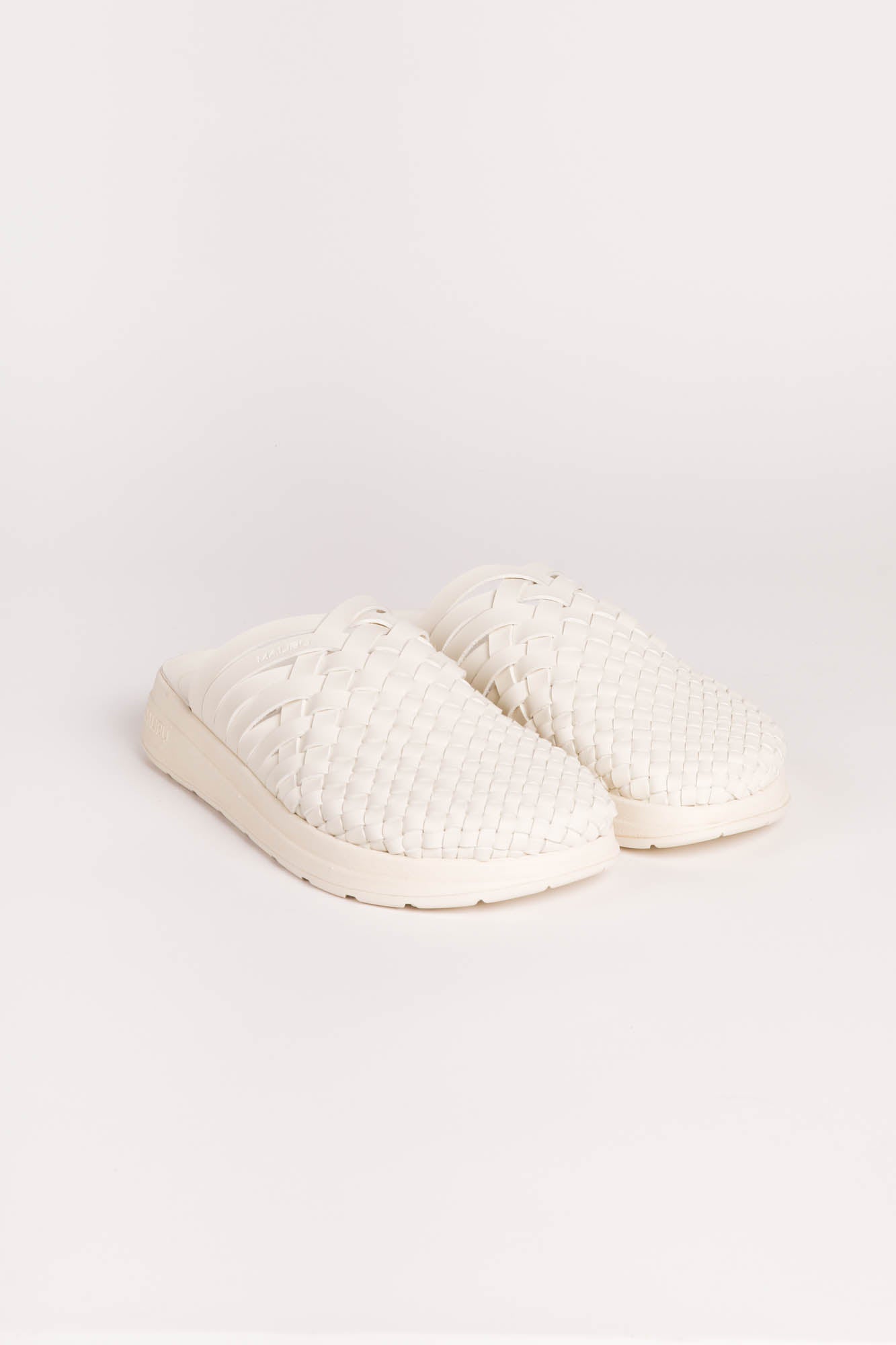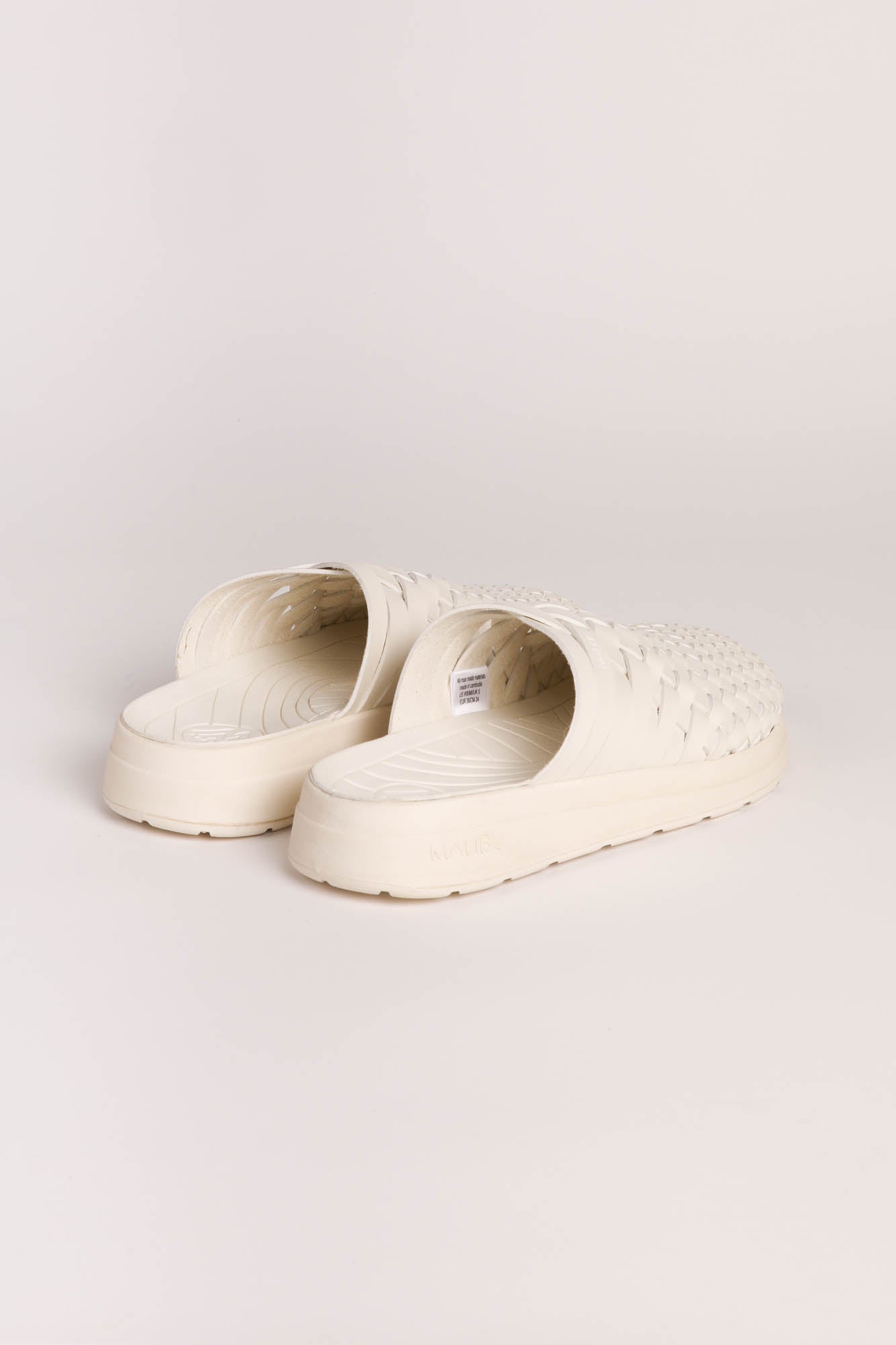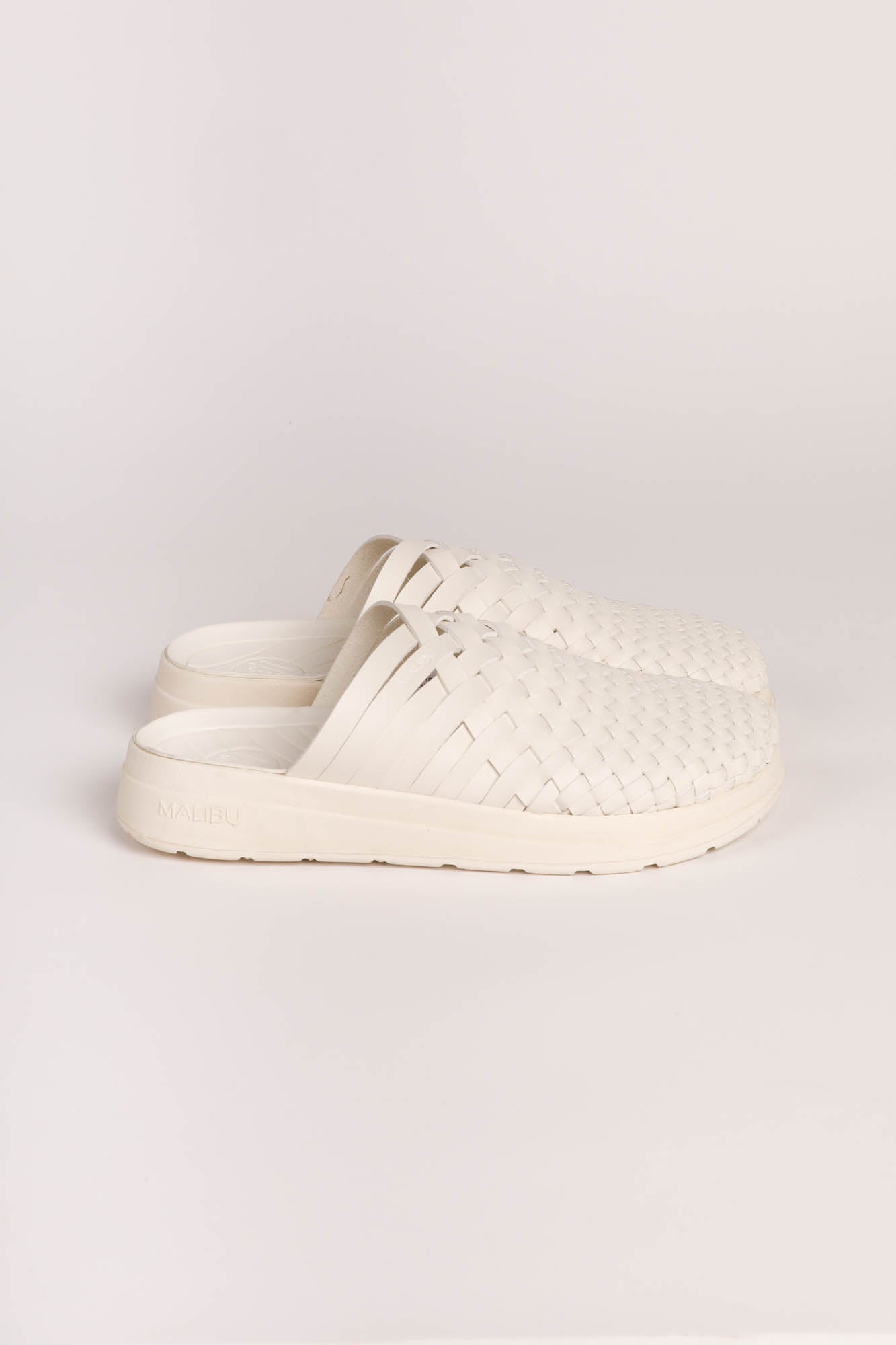 Colony is an open back handwoven polyester slip-on mule. Malibu Sandal's 3-piece outsole features a soft anatomically correct polyurethane footbed for a super comfortable fit, a sturdy phylon midsole for strong structural support and a durable rubber sole for ideal traction.