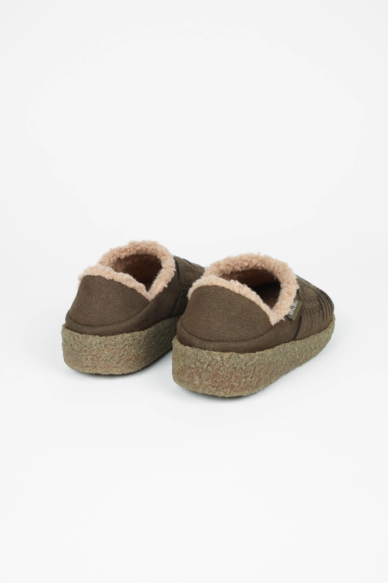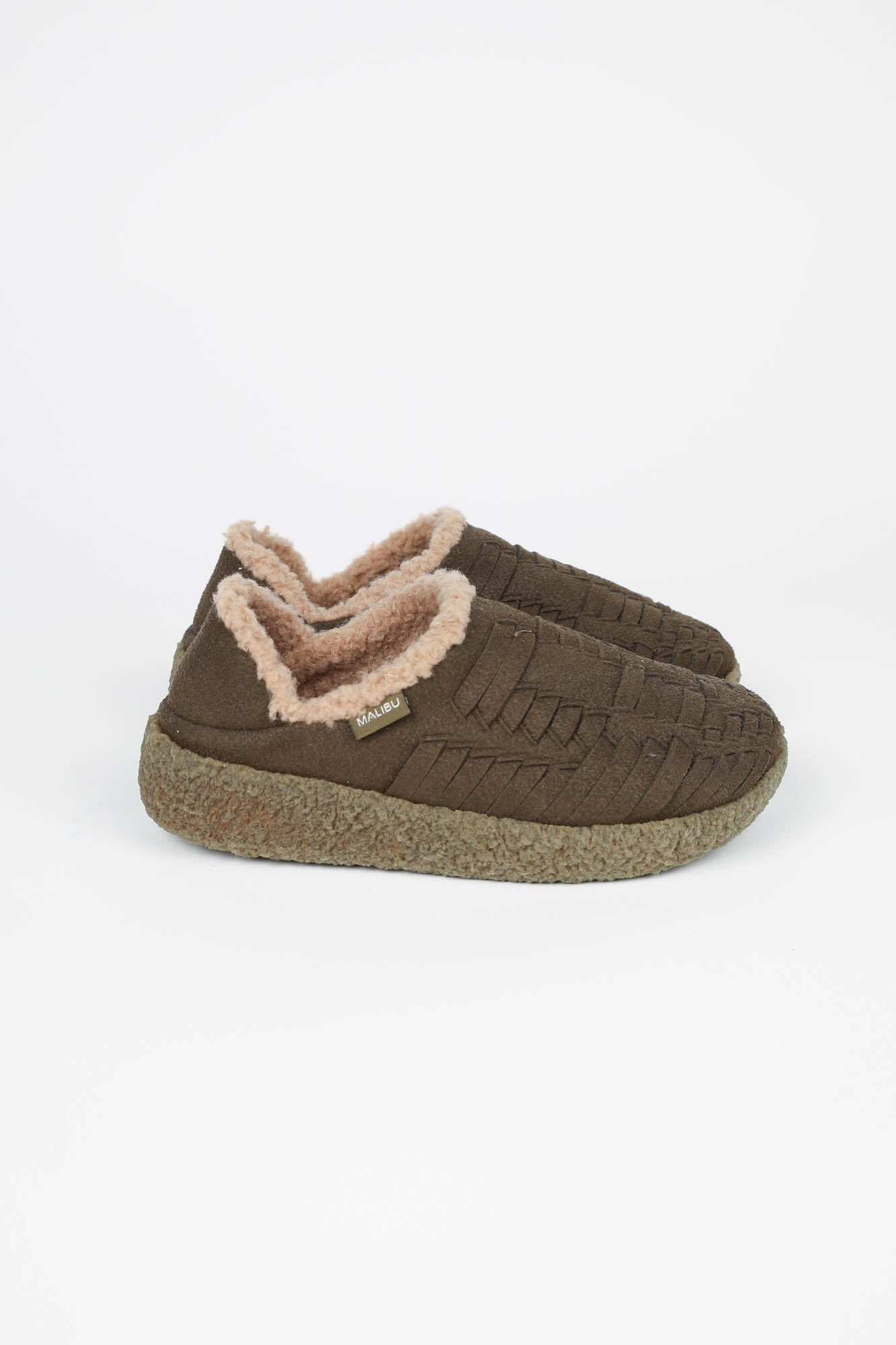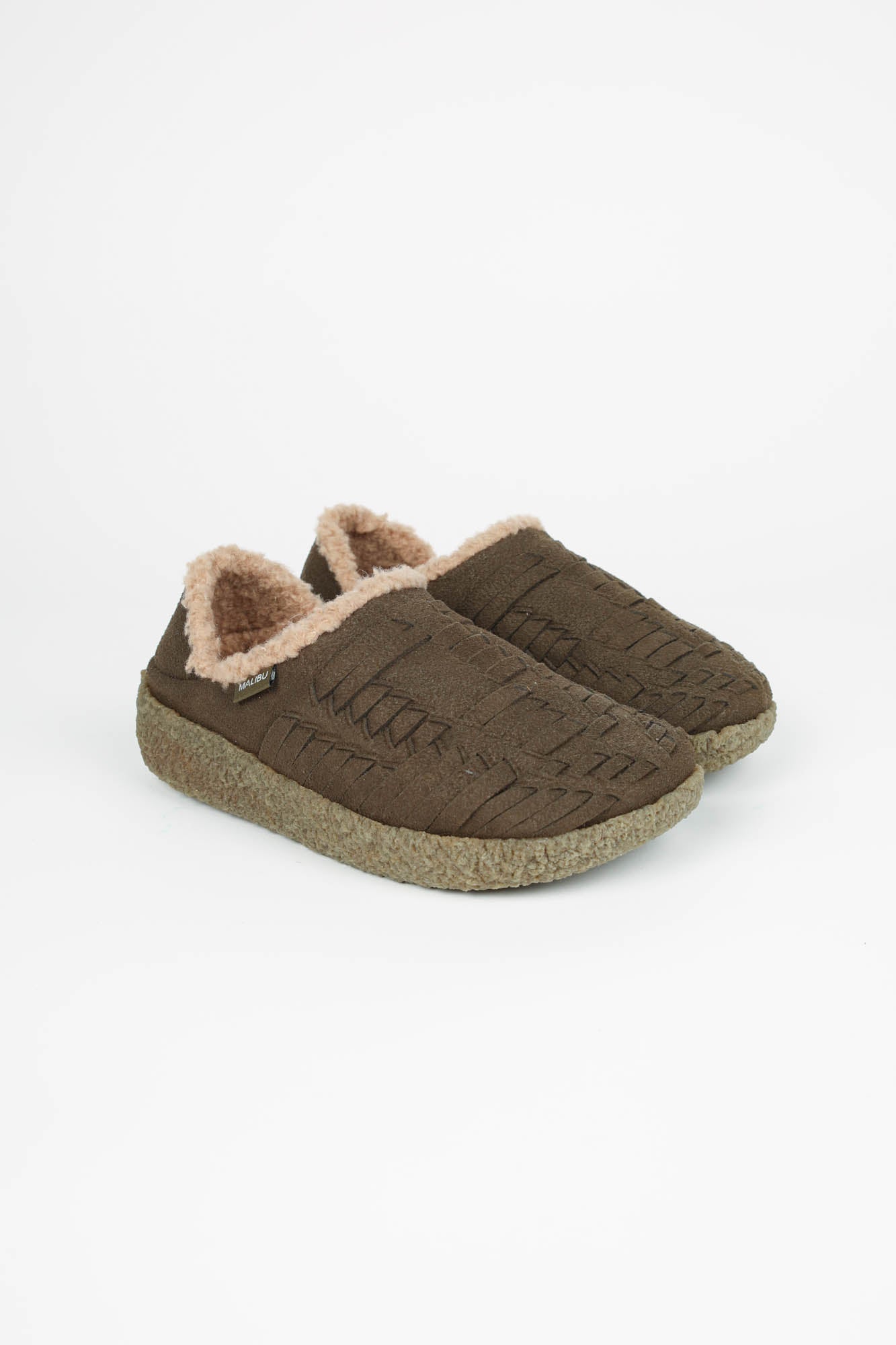 Thunderbird Convertible features huarache style slip on clog with a vegan leather upper and polyester fleece lining for warmth and natural crepe rubber sole. The heel can be raised or collapsed to be worn as a slip-on or as a shoe. The ultimate indoor-outdoor hybrid style.