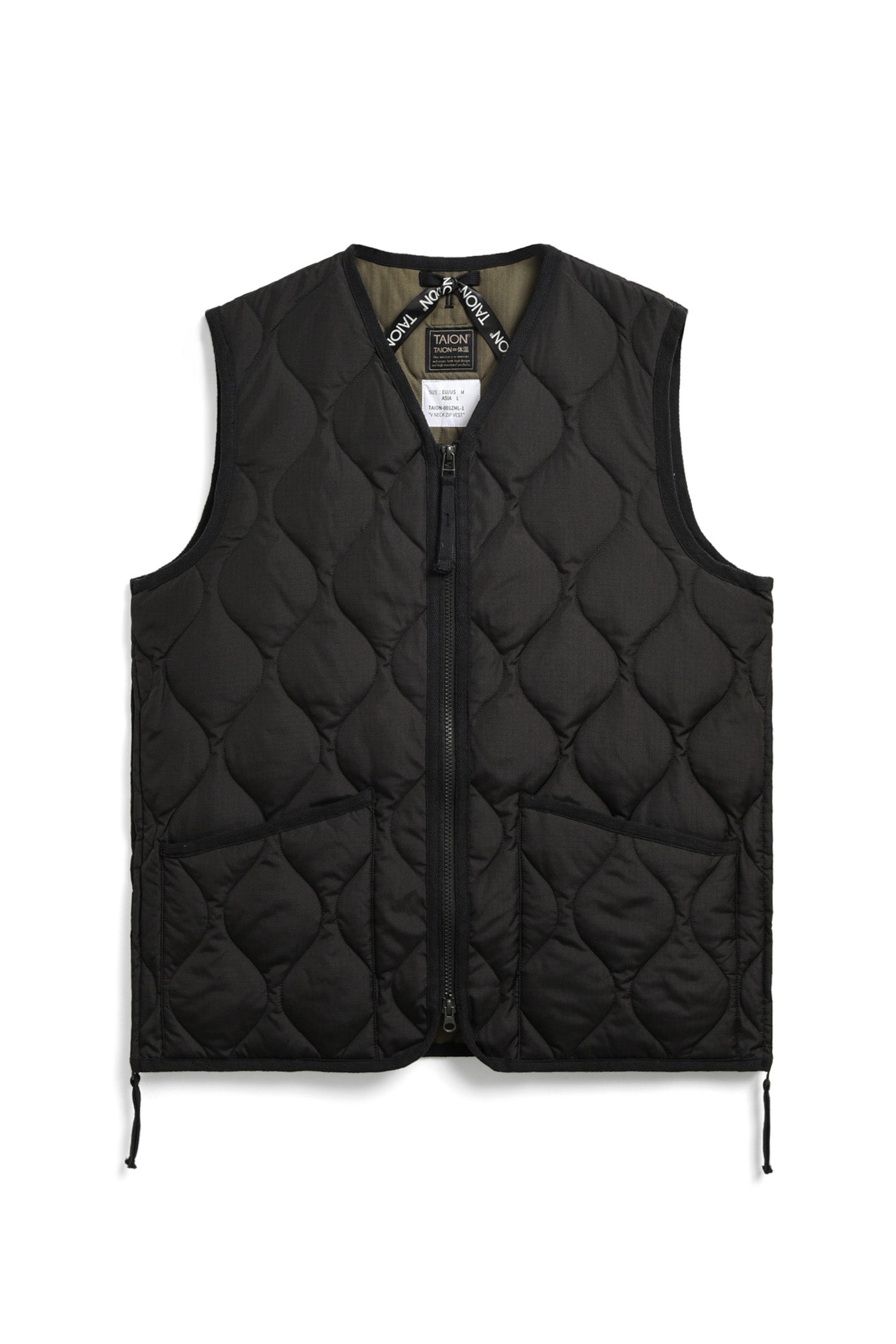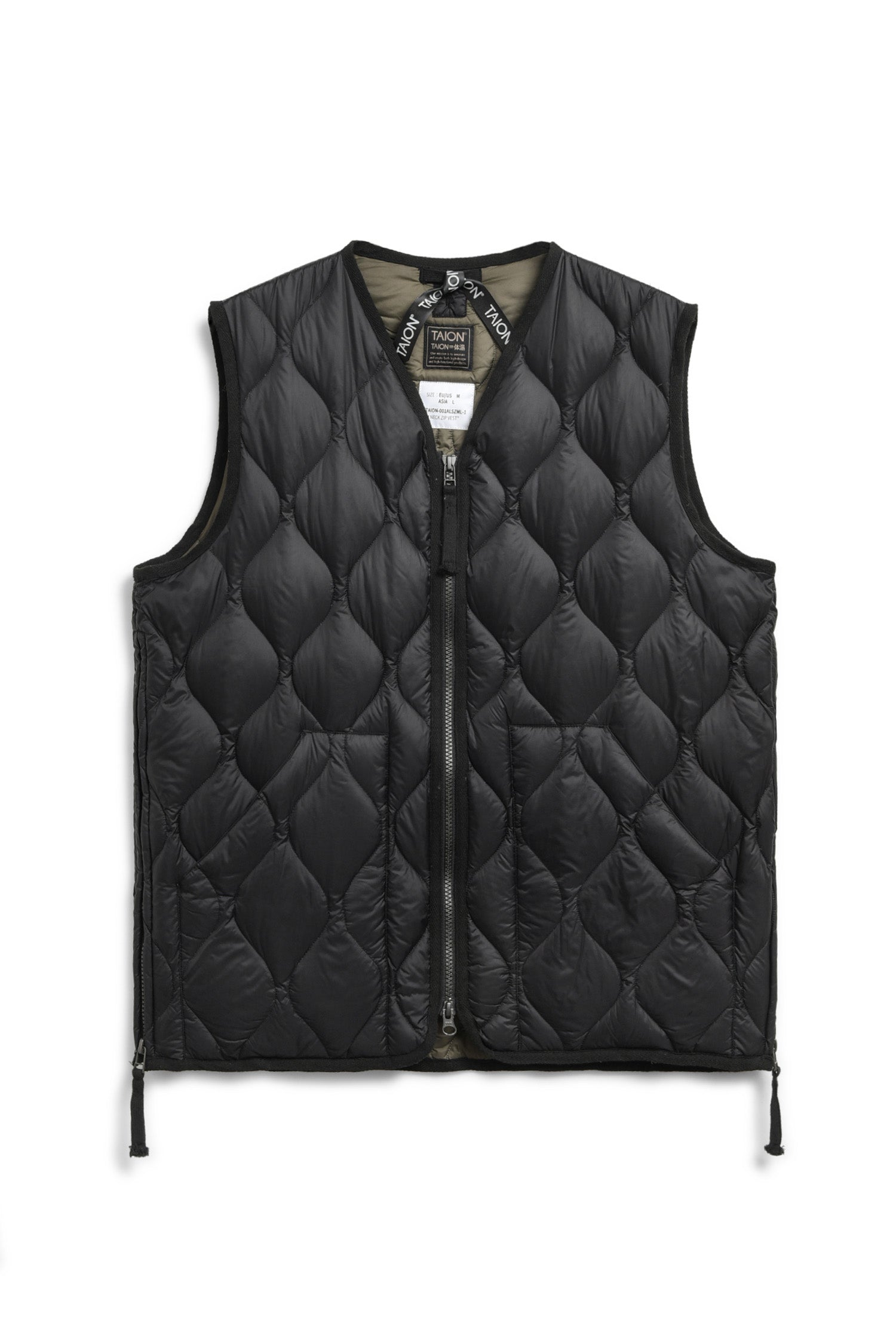 Military V Neck W-Zip Down Vest | Black