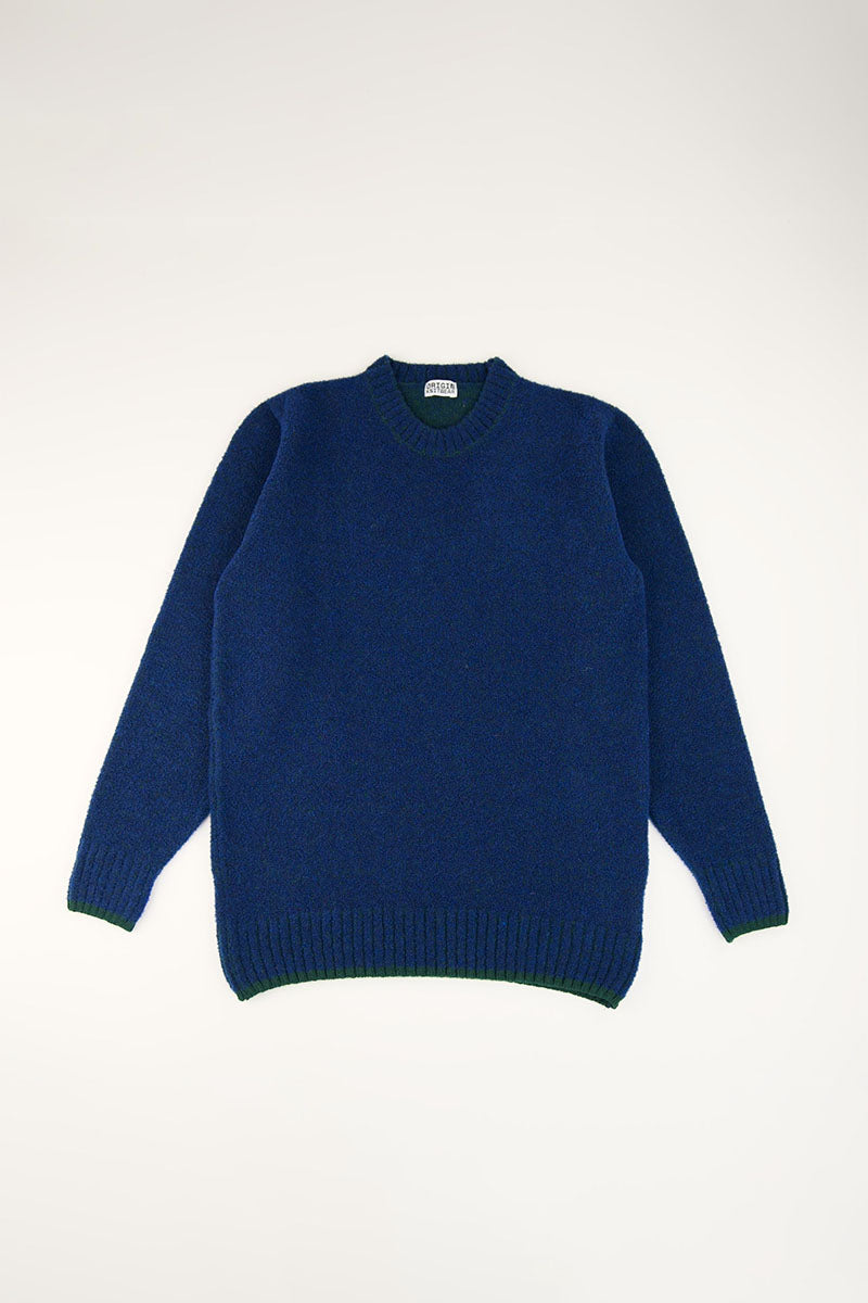 Origin Knitwear's Picadilly jumpers are made from their specially spun Soufflé yarn that features a thick and nubly texture, making this jumper one of the softest and fluffiest textures to wear. All Origin Knitwear's Soufflé jumpers are knitted with Lambswool on the machine's back bed to up not just the softness but the strength as well. The Picadilly blends two complimenting colours throughout the knit showing off depth and dimension of the luxurious yarn.