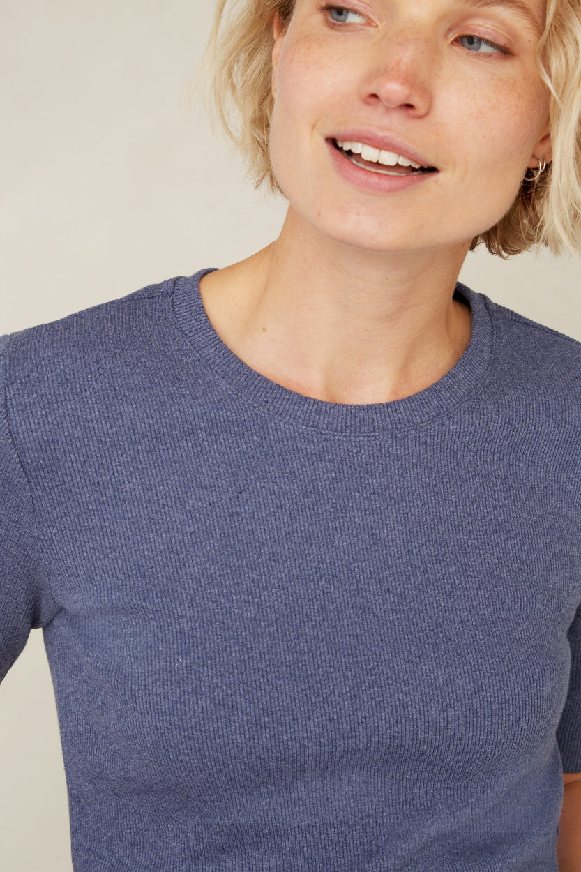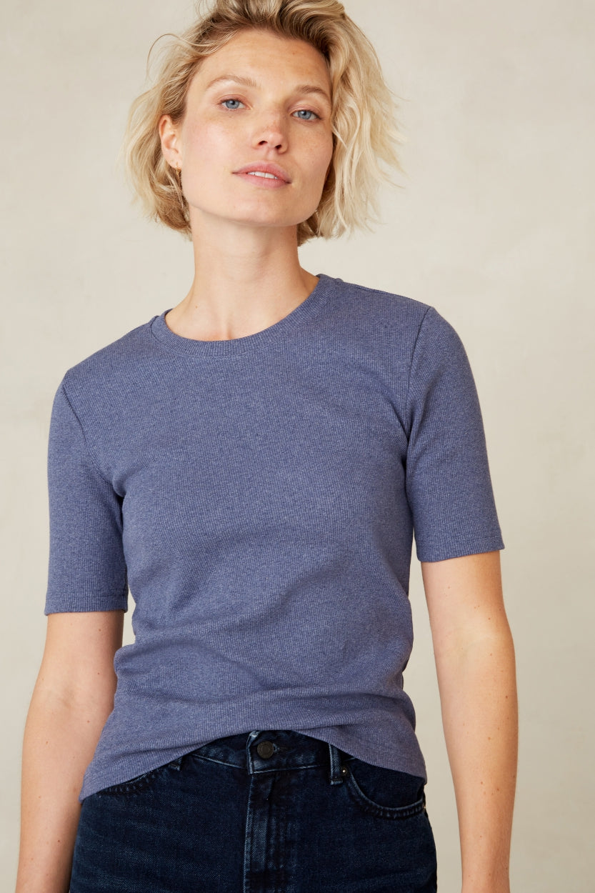 - Round neckline and fine ribbed stretch fabric