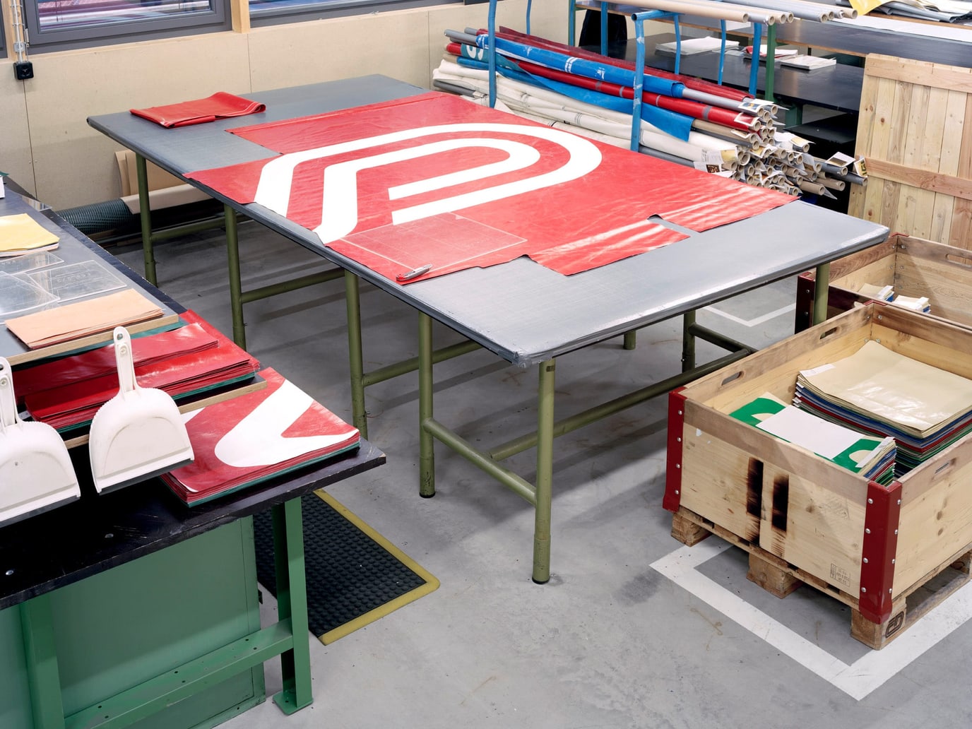 The tarp pieces are then stacked, numbered and sent to the sewing departments.