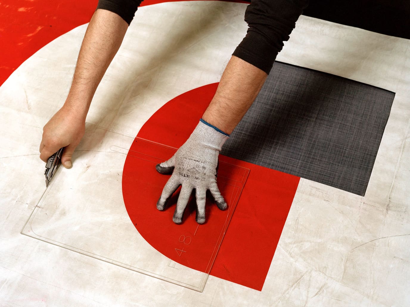 ... using templates and their cutters to carve the most beautiful and exquisite designs from the tarps.