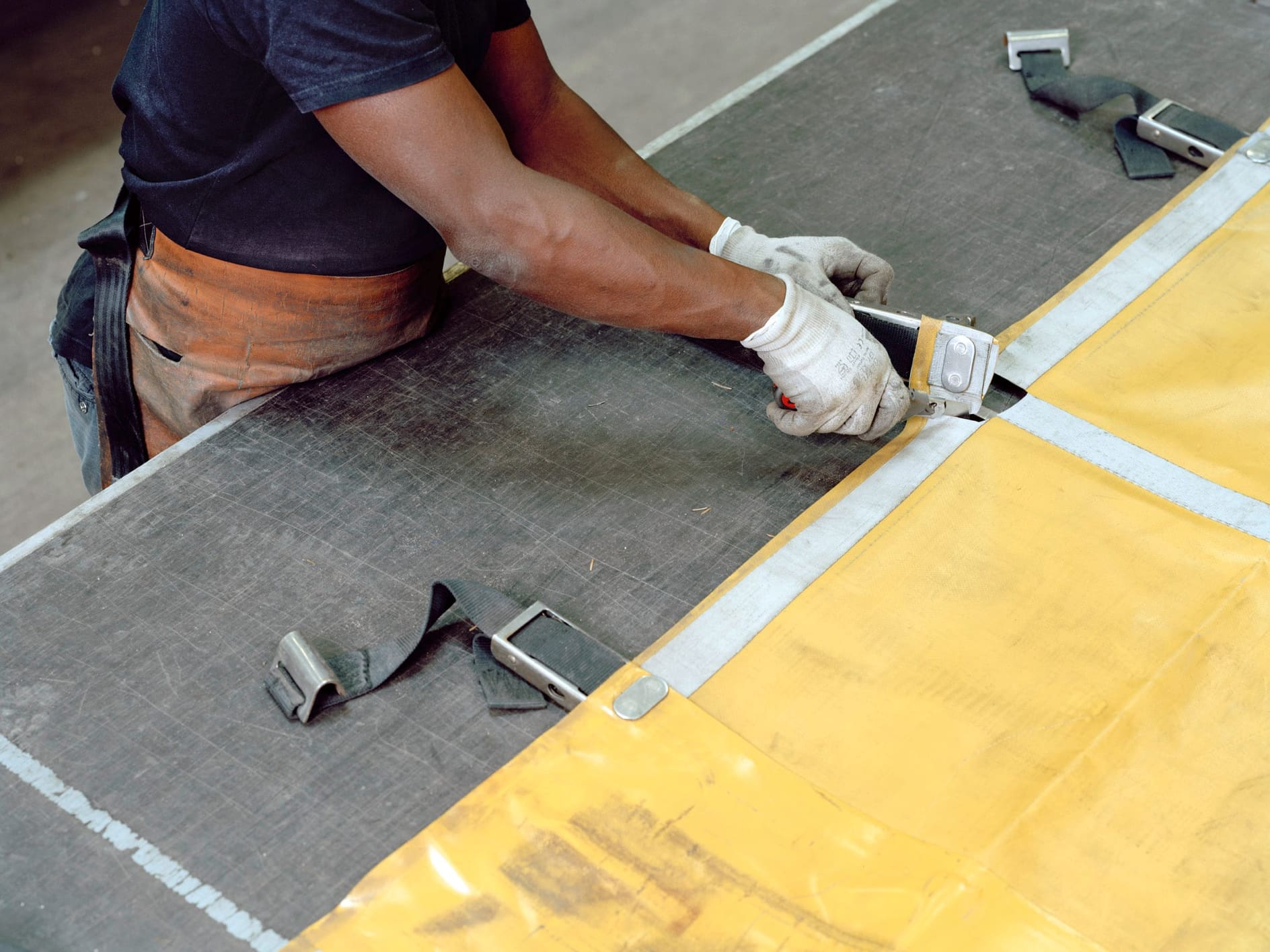 Once they arrive at the factory, the tarpaulins are given an ID for traceability and their constituents tested so that we can guarantee the safety of our products.