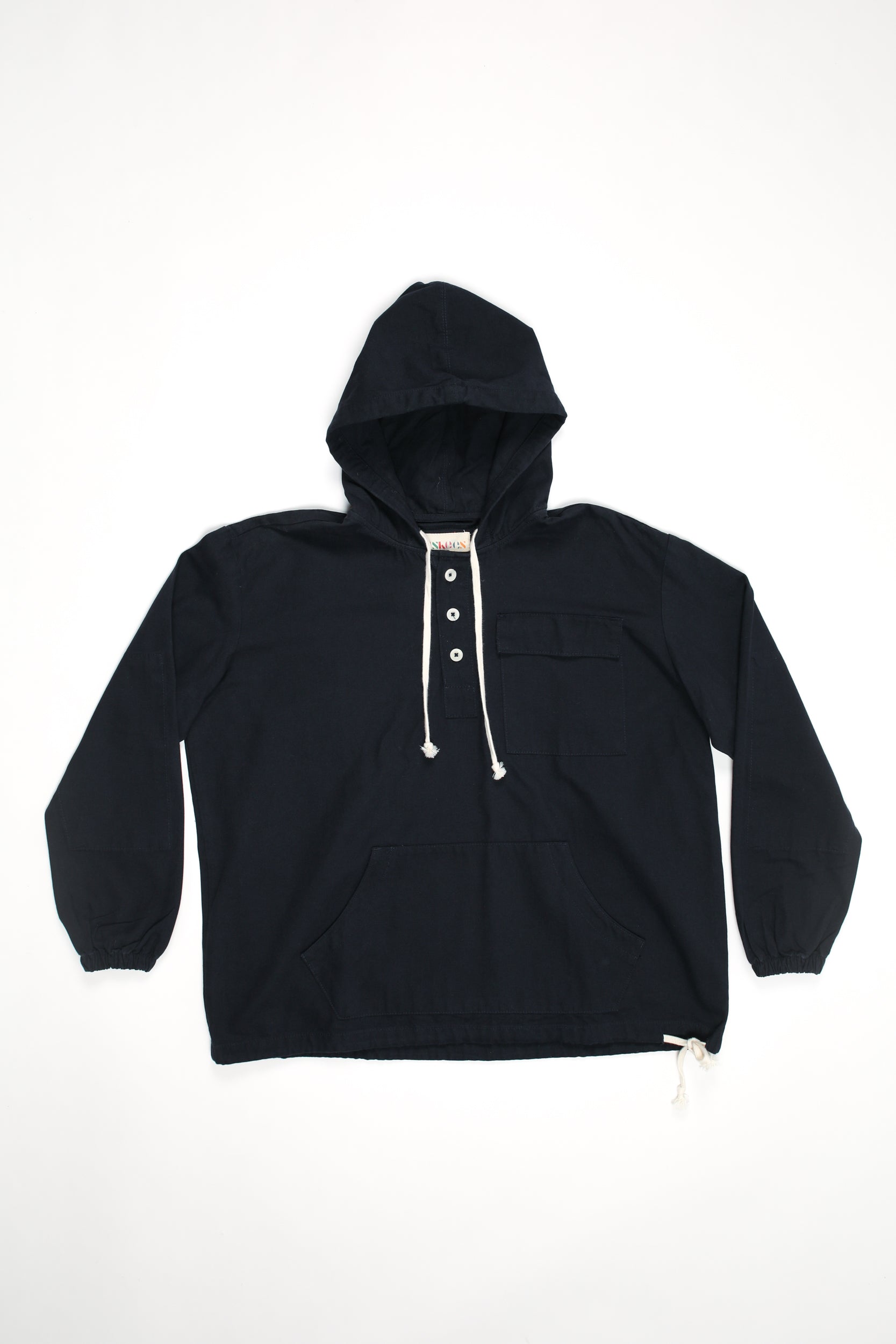 This organic cotton smock in 'Midnight Blue' has a simple loose boxy design and is designed to be worn as an overgarment.
