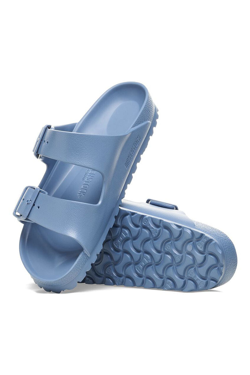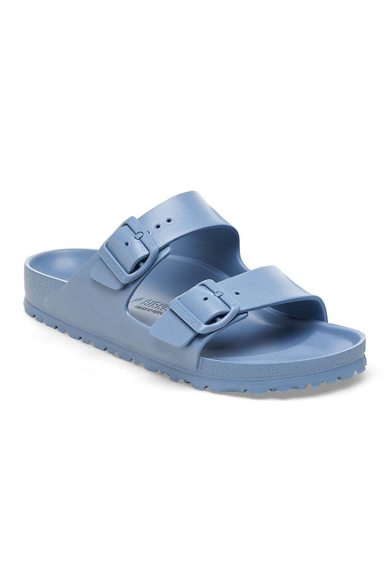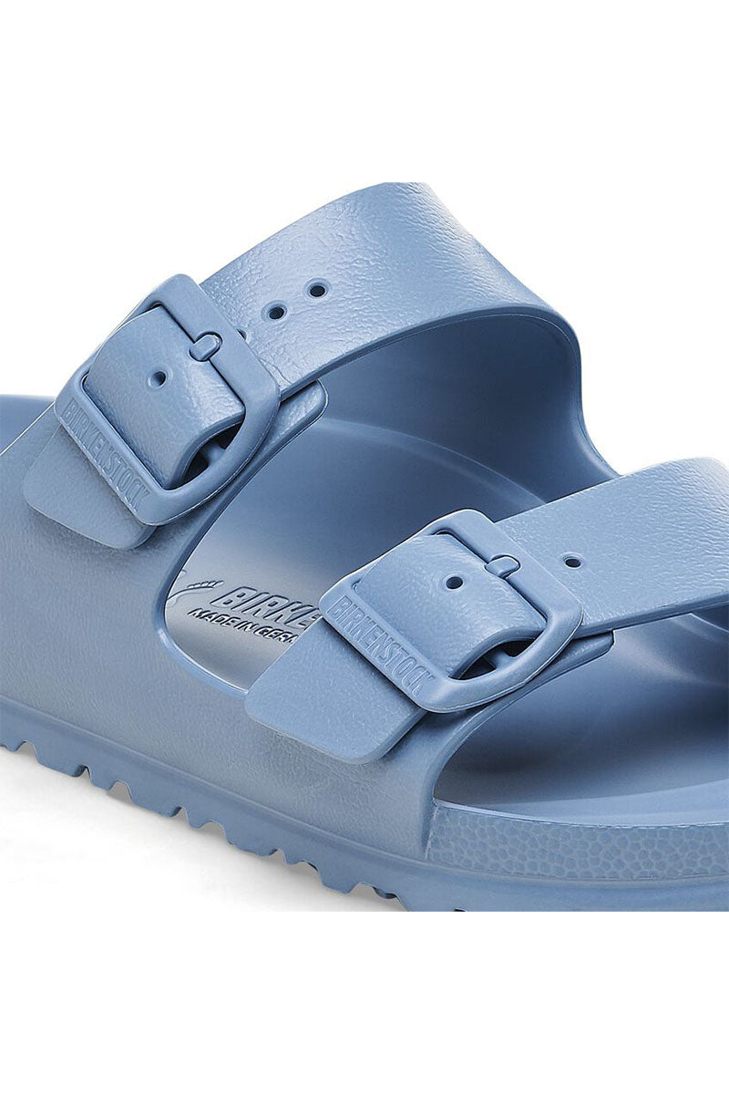 The legendary two-strap design from Birkenstock - the Arizona. Modelled on the cork original, this sandal is made from ultra lightweight and highly flexible EVA. These sandals are shock absorbing, waterproof, and skin-friendly. Wear them at the beach, in the garden, or around the gym and after workouts. It's the perfect addition to your classic Birkenstock sandals.