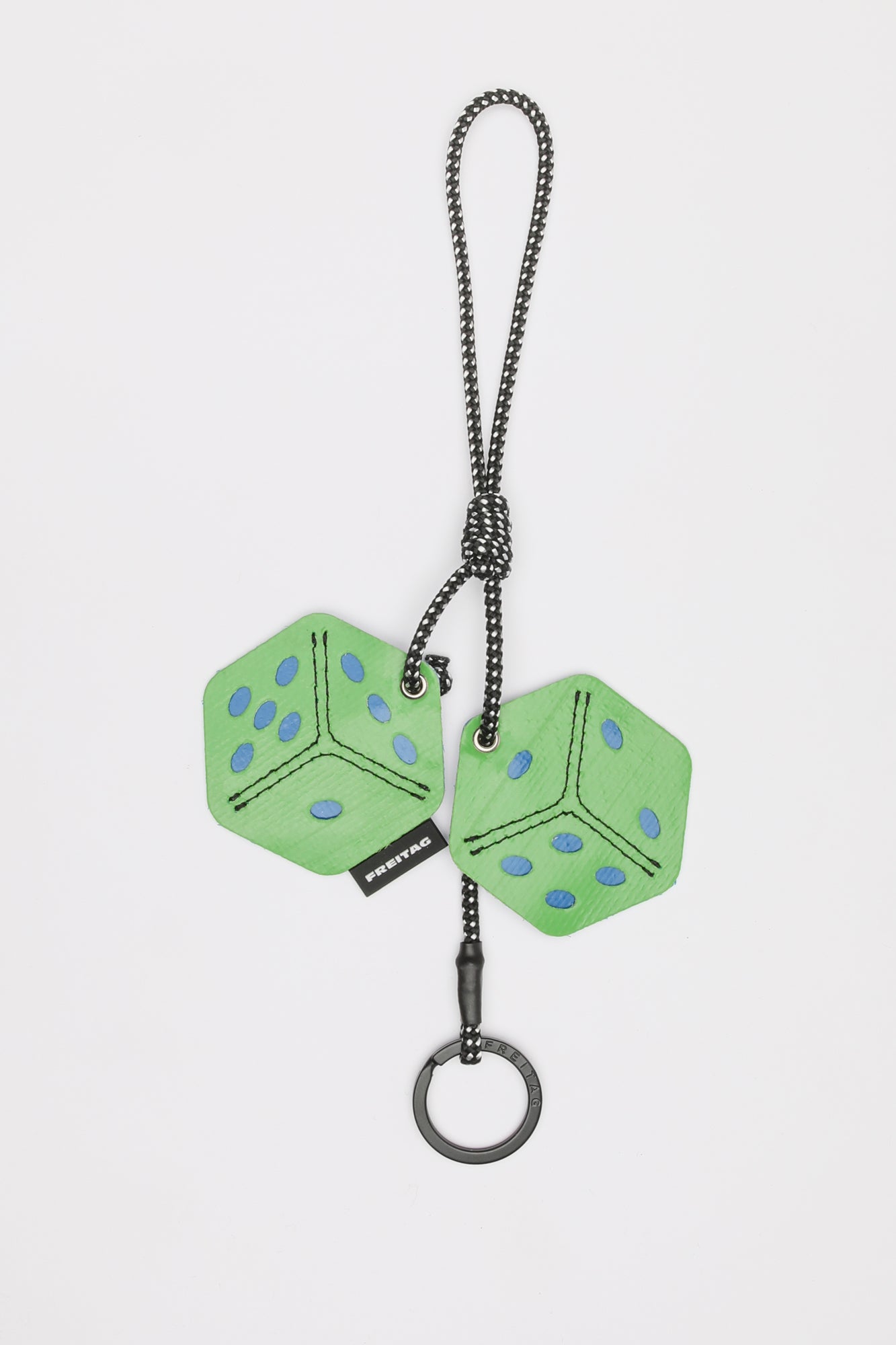 At FREITAG, the iconic ´fuzzy diceª are two-dimensional and made†of used truck tarps, but still just as lucky. Promise