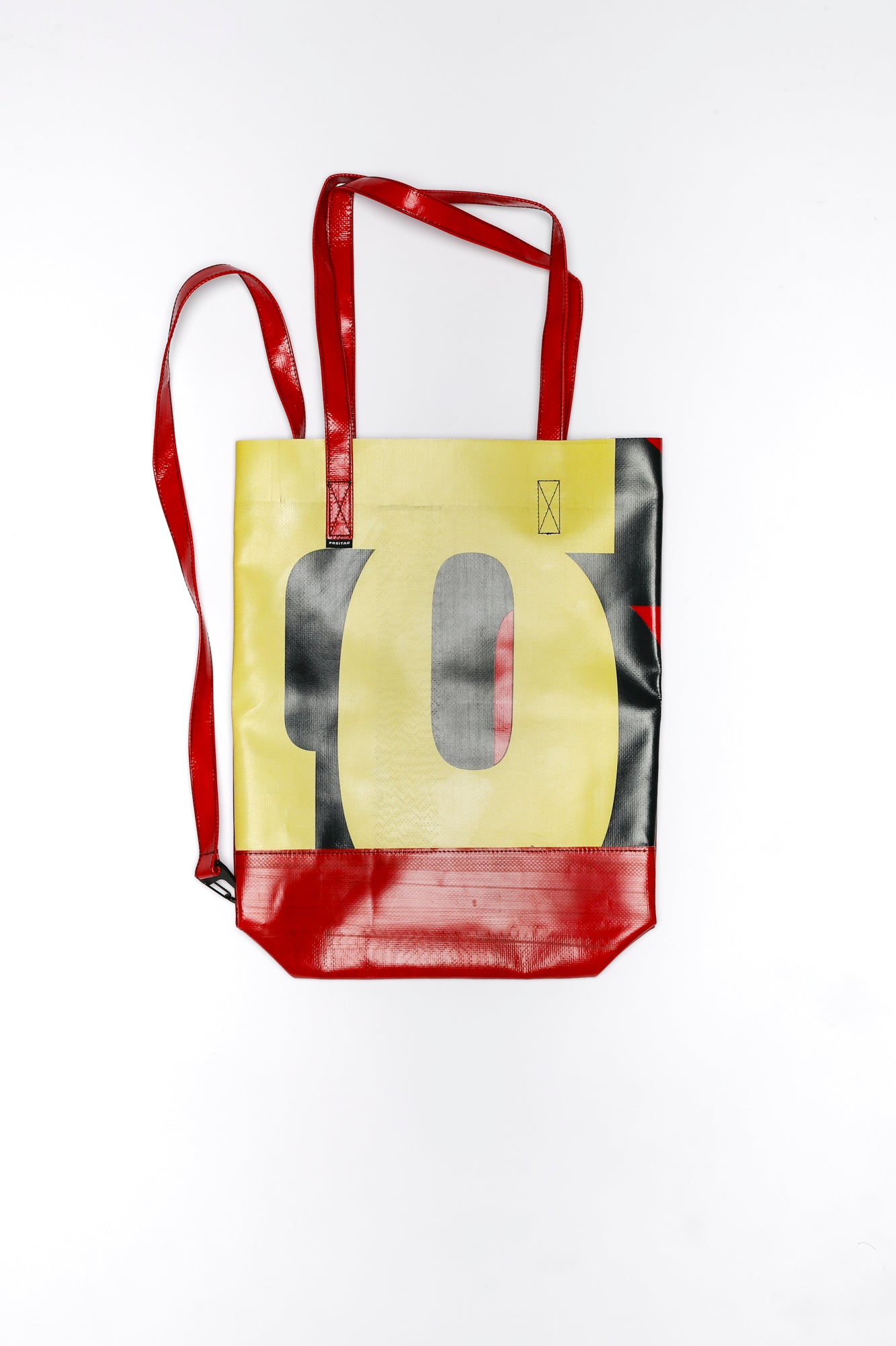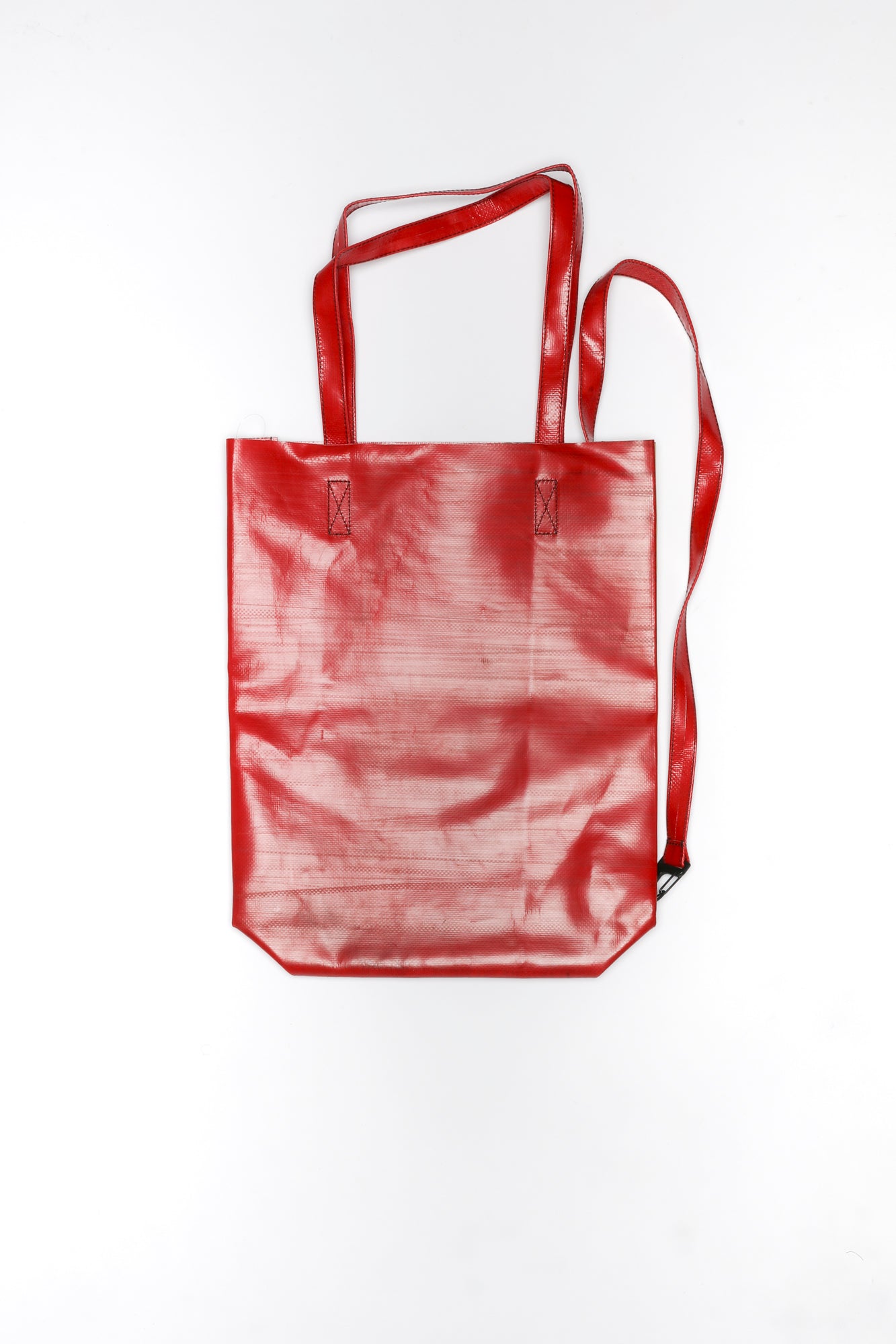 The small TOTAL TARP TOTE. A simple strap with a snap hook boosts a simply beautiful all-tarp tote bag to a whole new level of functionality: Wear it like a backpack and have a safe ride.