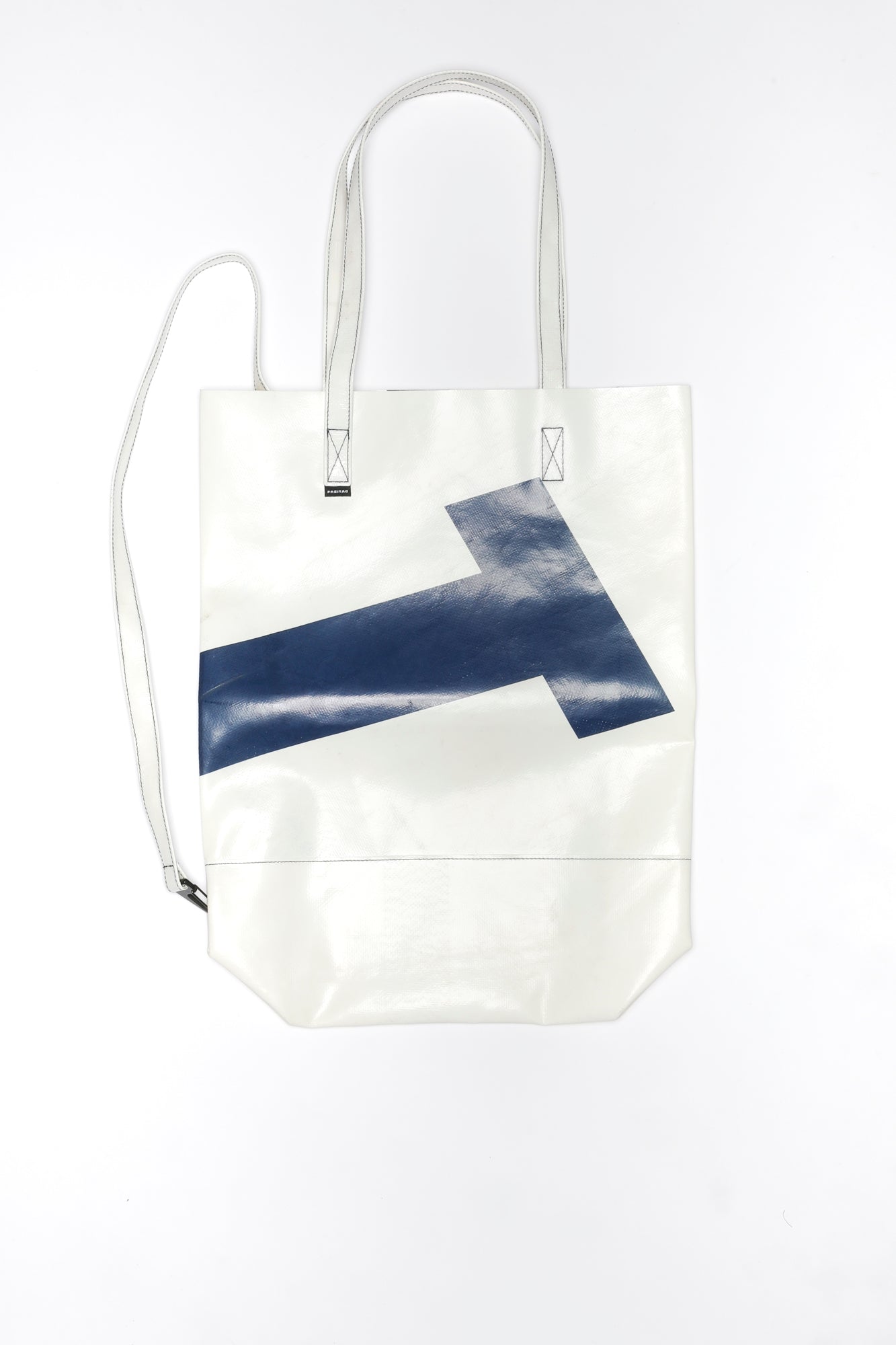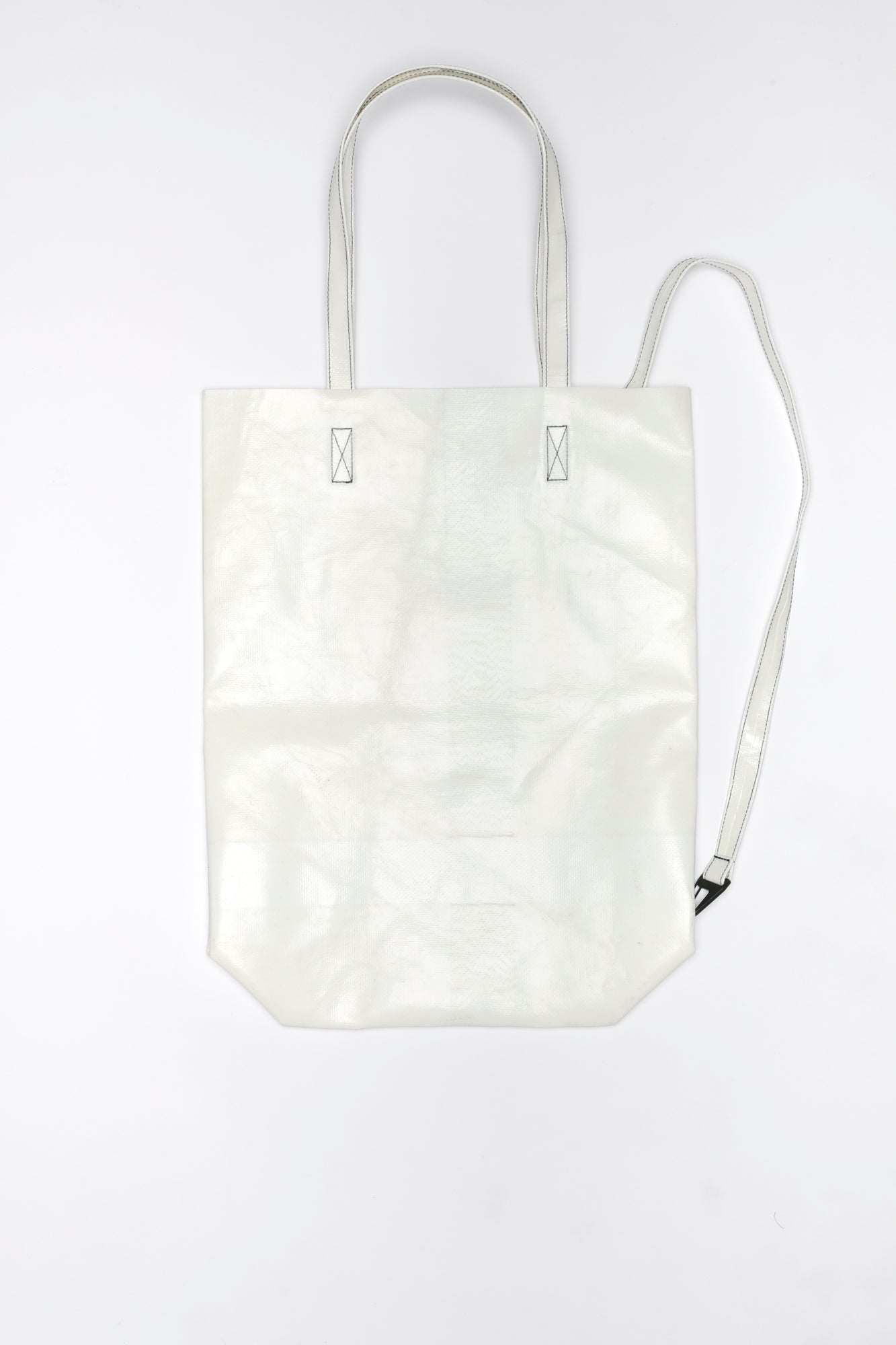 The medium TOTAL TARP TOTE. A simple strap with a snap hook boosts a simply beautiful all-tarp tote bag to a whole a new level of functionality: Wear it like a backpack and have a safe ride.