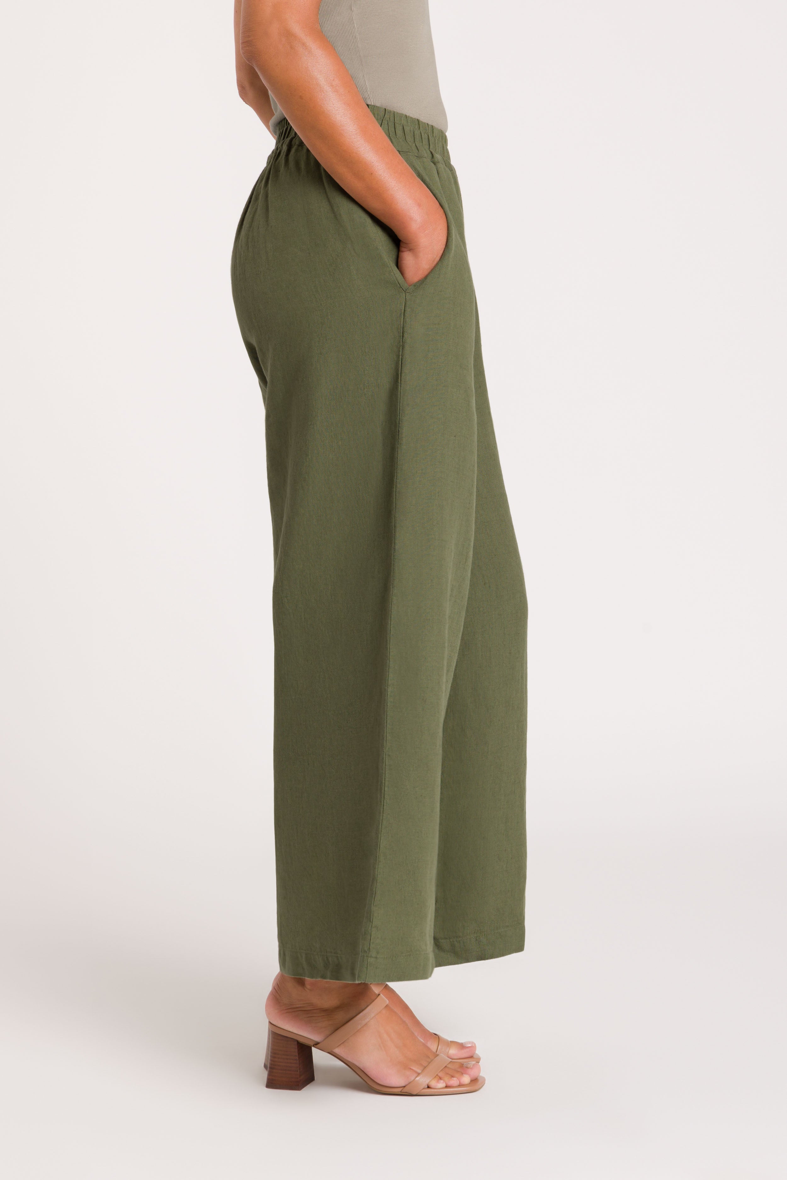 Relaxed fit linen pants with a wide leg. Crafted from 100% linen.