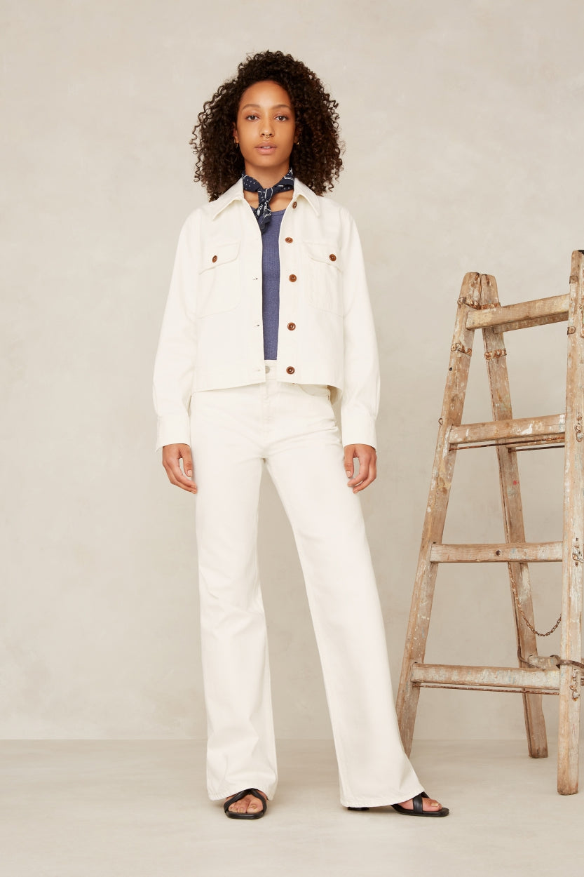 - High rise, Relaxed flare leg, Non-Stretch